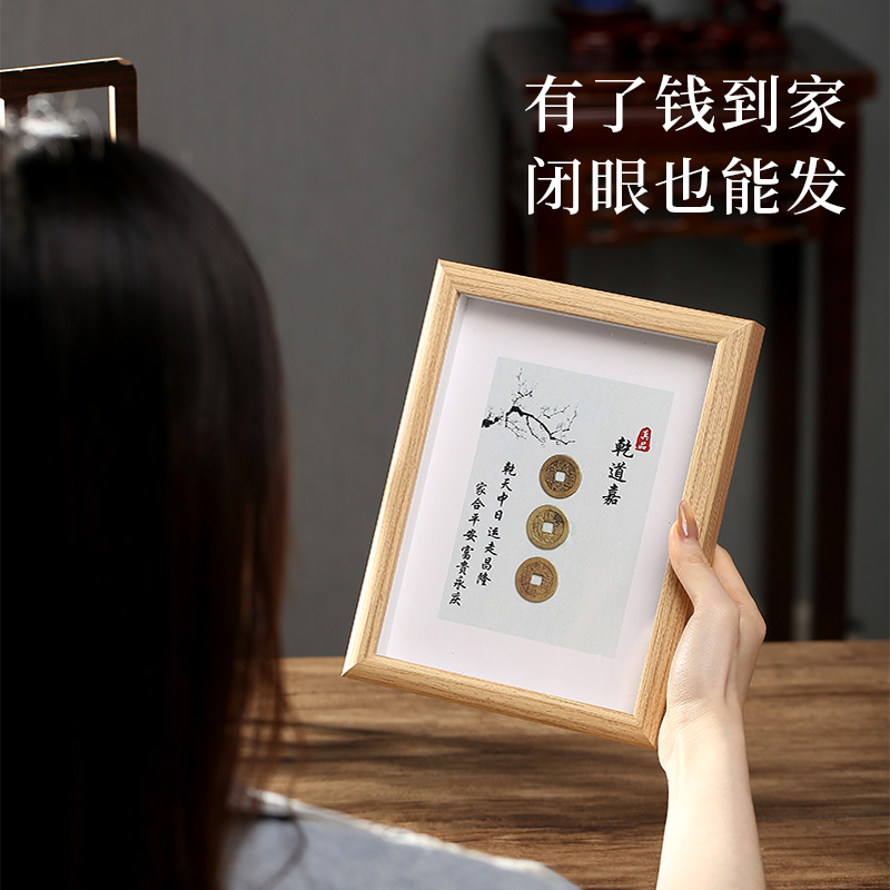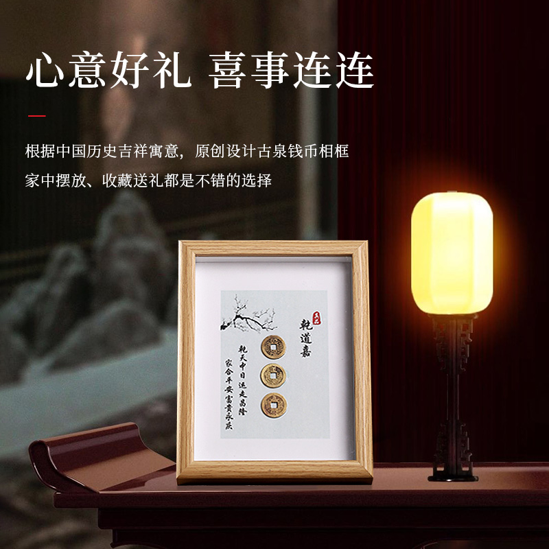 钱到家相框摆件乾道嘉真品古币五帝钱摆台客厅办公室乔迁新居礼品