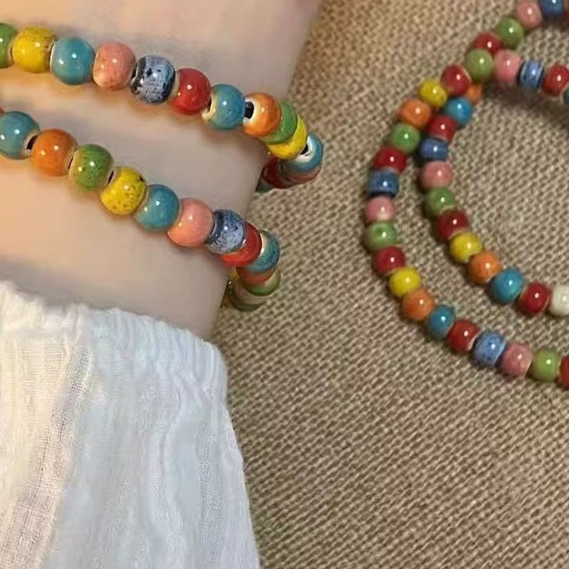 多巴胺彩色陶瓷串珠手链女小众设计波西米亚手串气质弹力叠戴