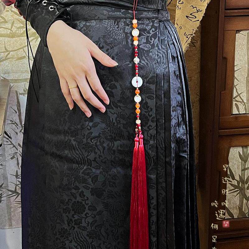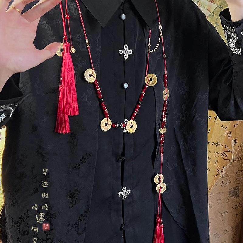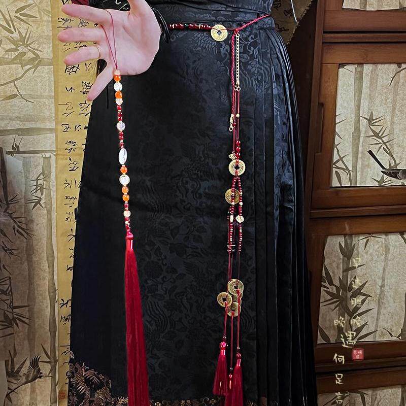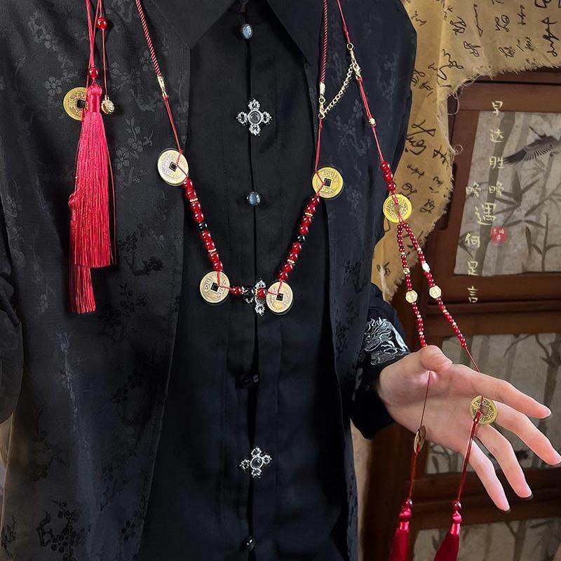 腰缠万贯~新中式红色铜钱流苏项链禁步腰佩古风汉服腰间挂件挂饰