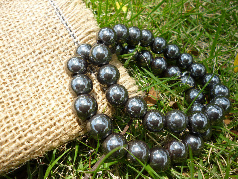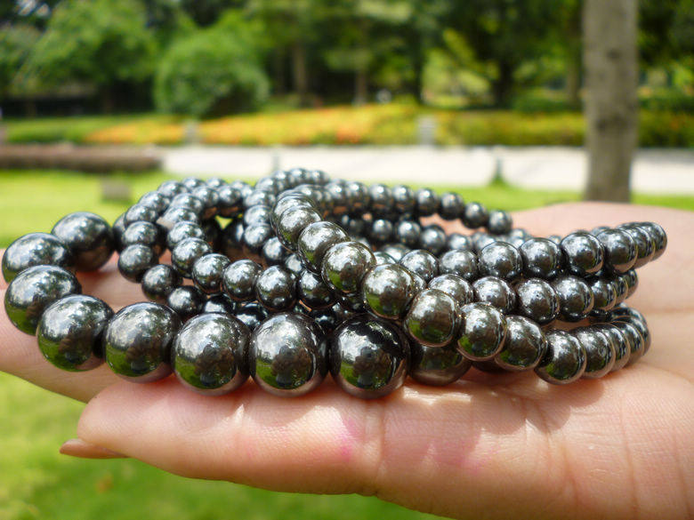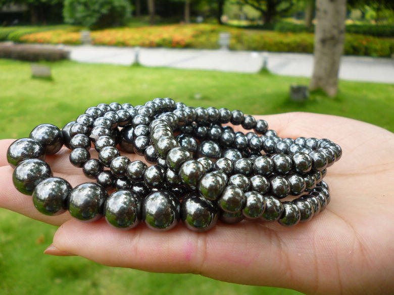 磁性黑胆石手链手珠手串钨金男女圆珠时尚百搭吸铁石磁铁