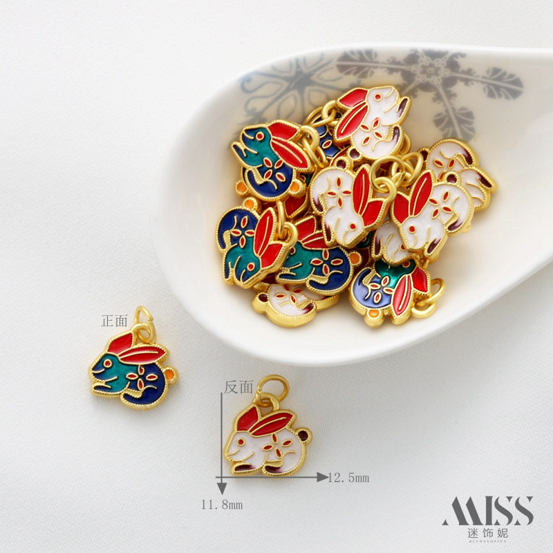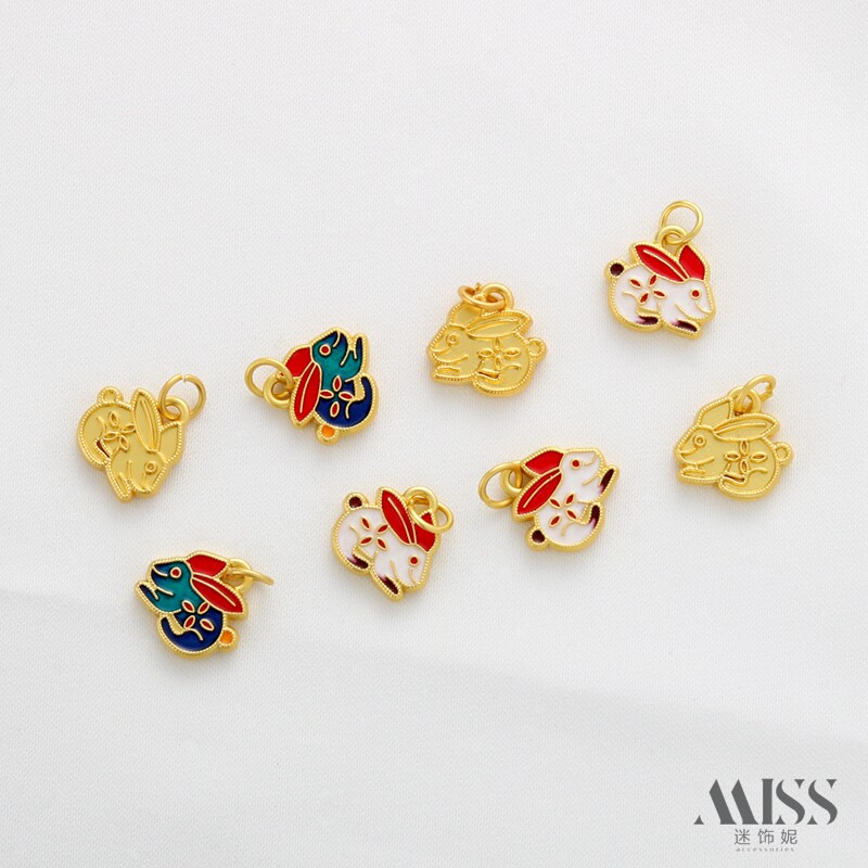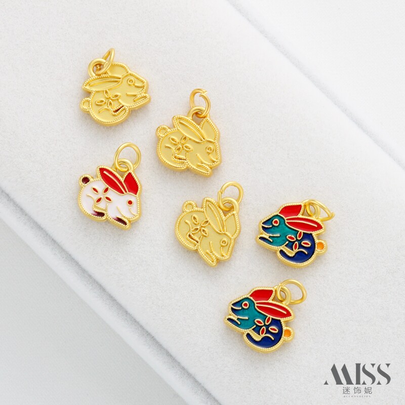 18K包金保色哑金烧蓝滴油玉兔子吊坠挂件diy手链项链挂吊饰品配件