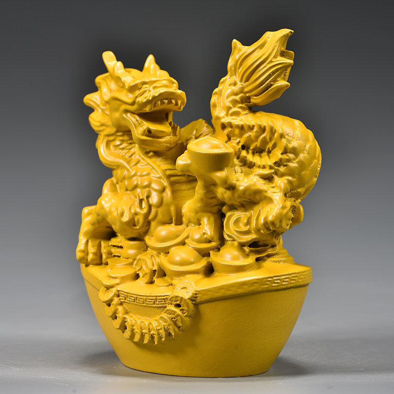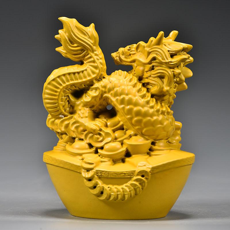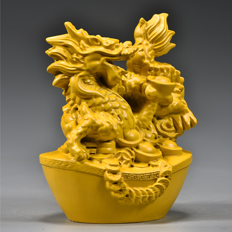 黄色实木龙摆件木质十二生肖青色木头龙形吉祥物装饰木制工艺品