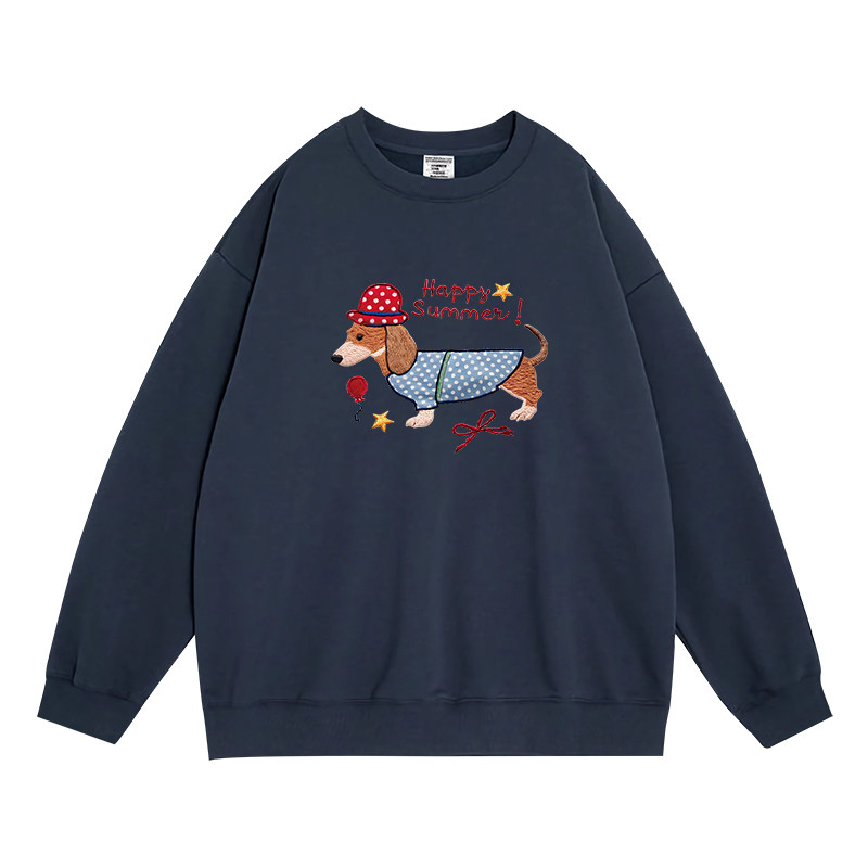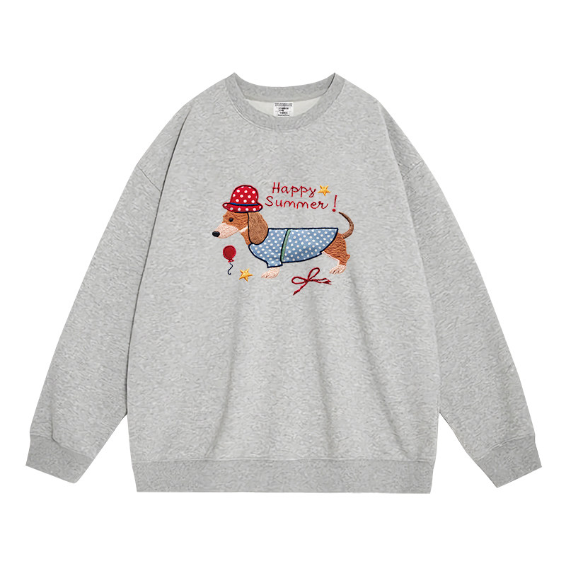 日本offcat陈都灵同款灰色圆领卫衣女秋冬季韩系宽松小众洋气独特