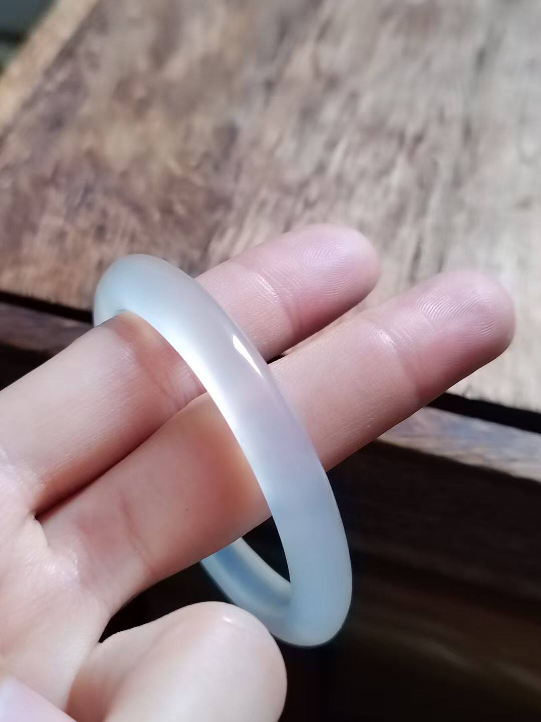 50-51圈口天然无烧无染色玛瑙玉髓手镯白月光荔枝冻开口猫爪玉镯
