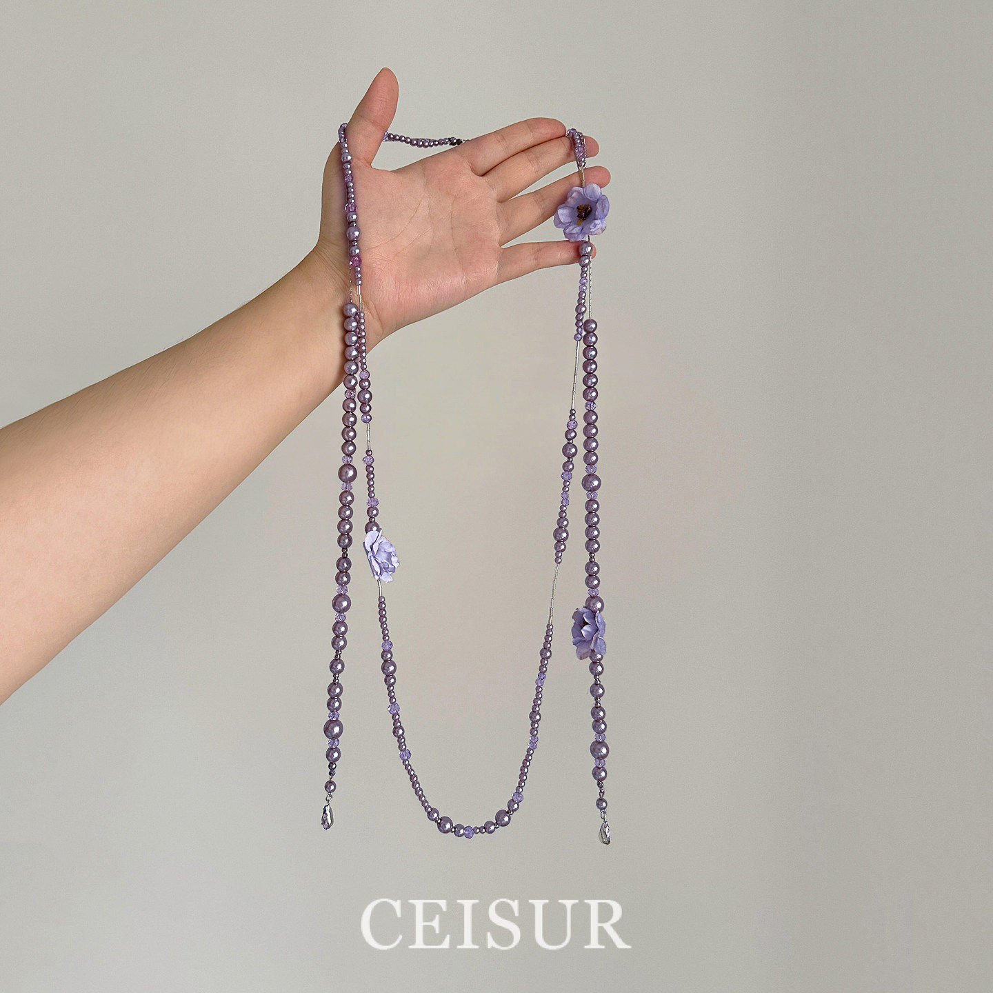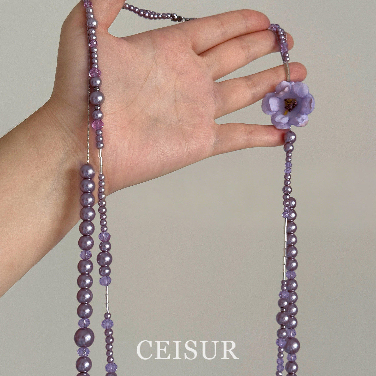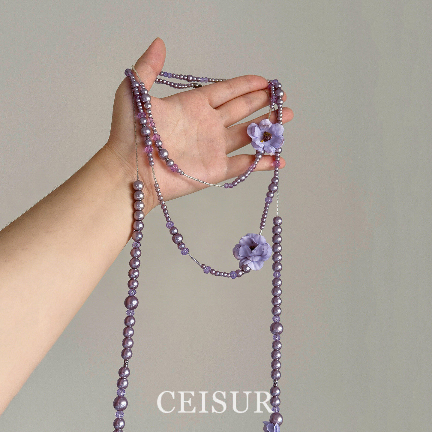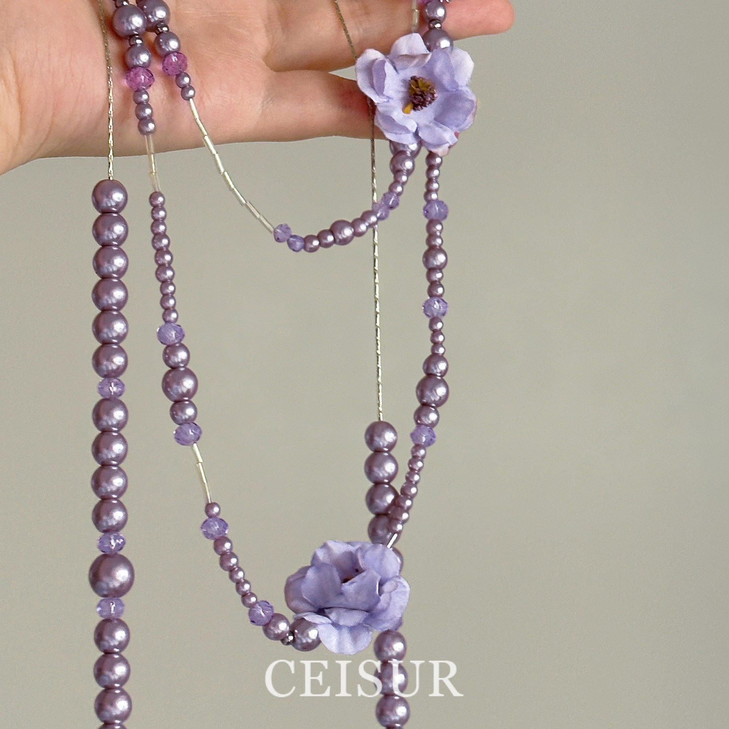 紫色韵味~法式复古花朵串珠紫花多层叠戴项链小众清新甜美毛衣链