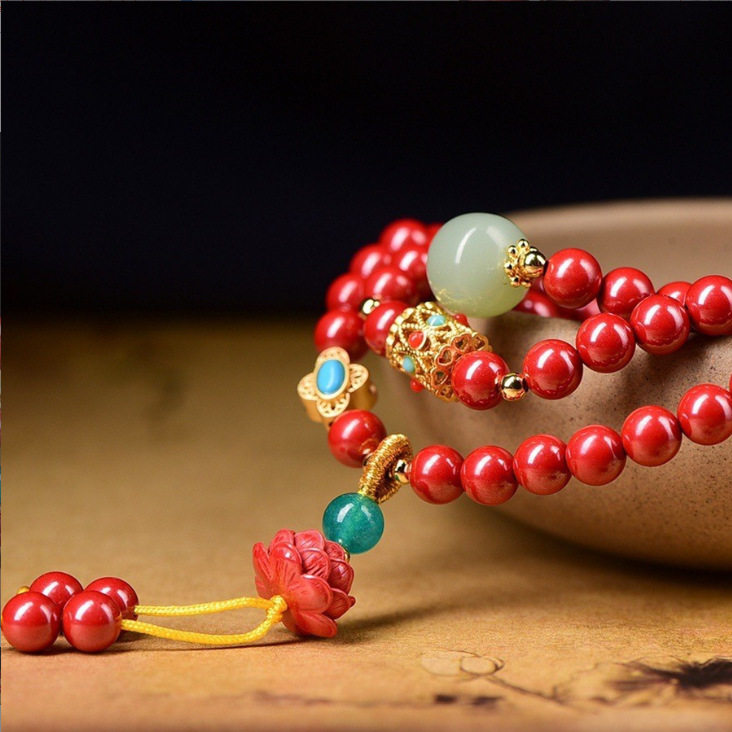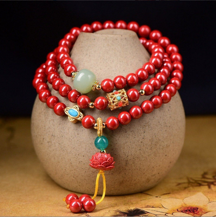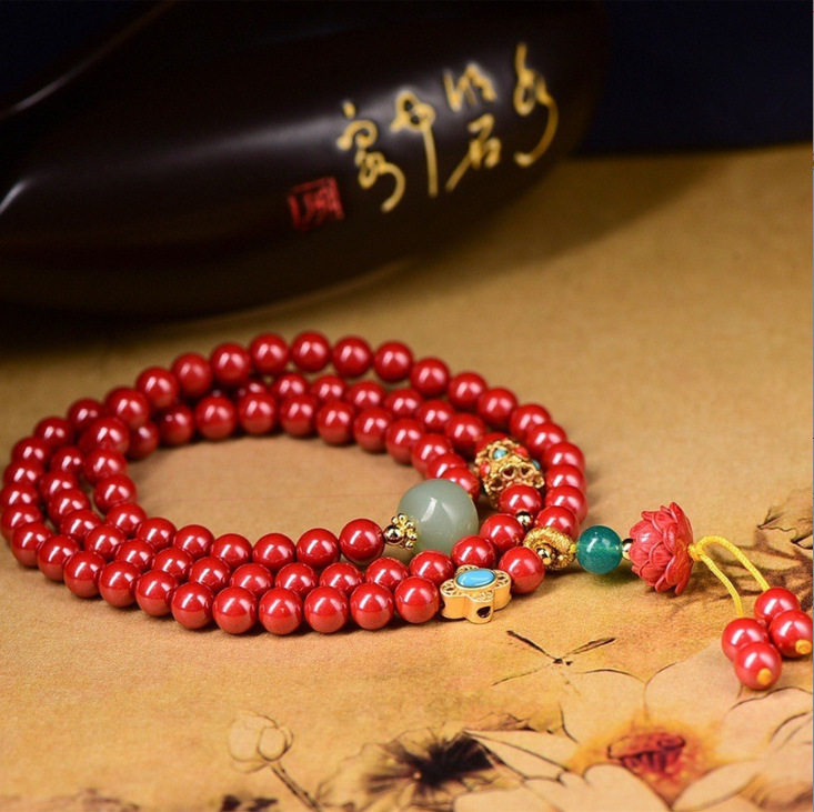 天然高含量帝砂手串女本命年红色多圈名族风气质手链女高档礼物