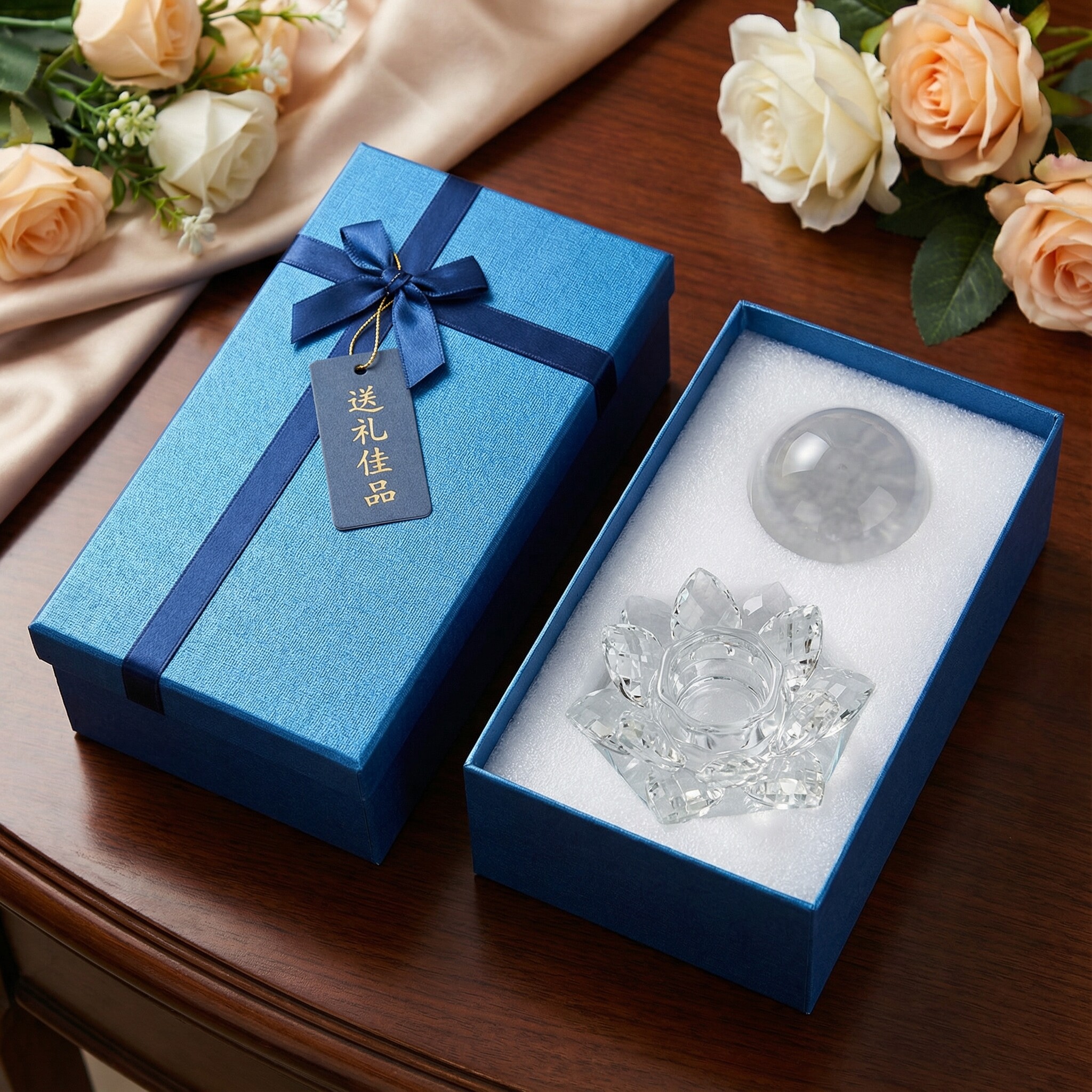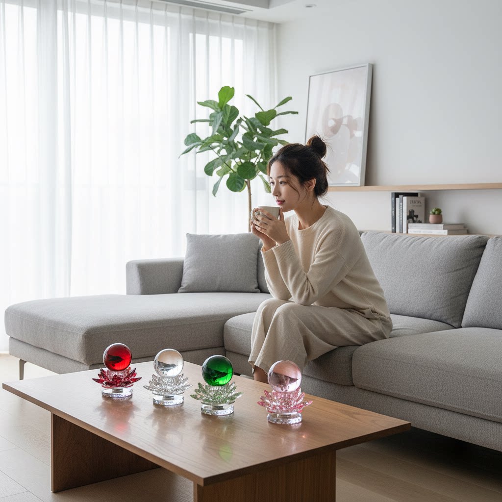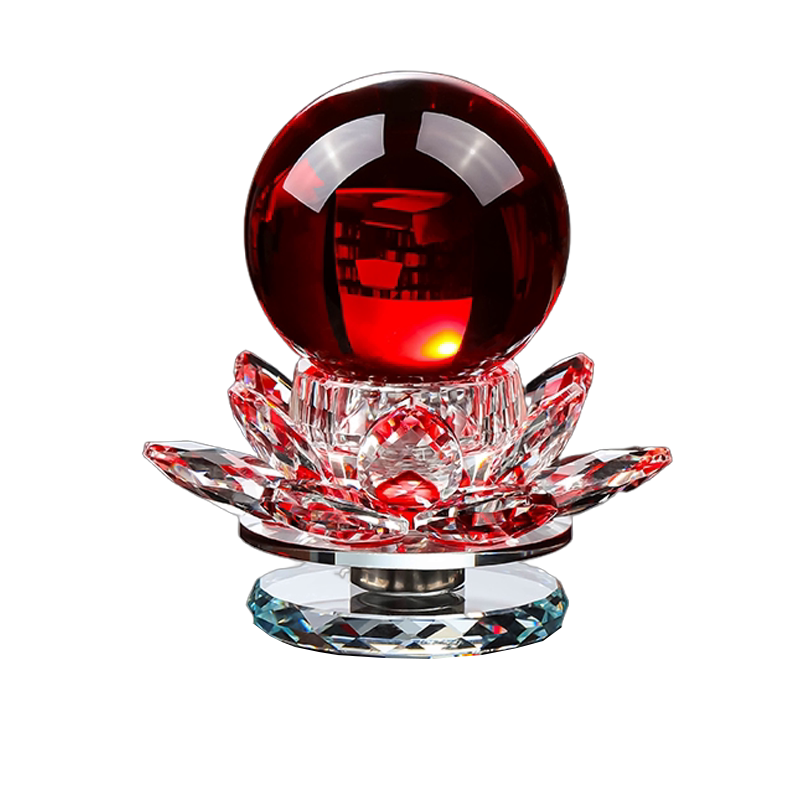 黄色水晶球莲花摆件家居桌面摆件莲花底座玄关摆件电视柜客厅装饰