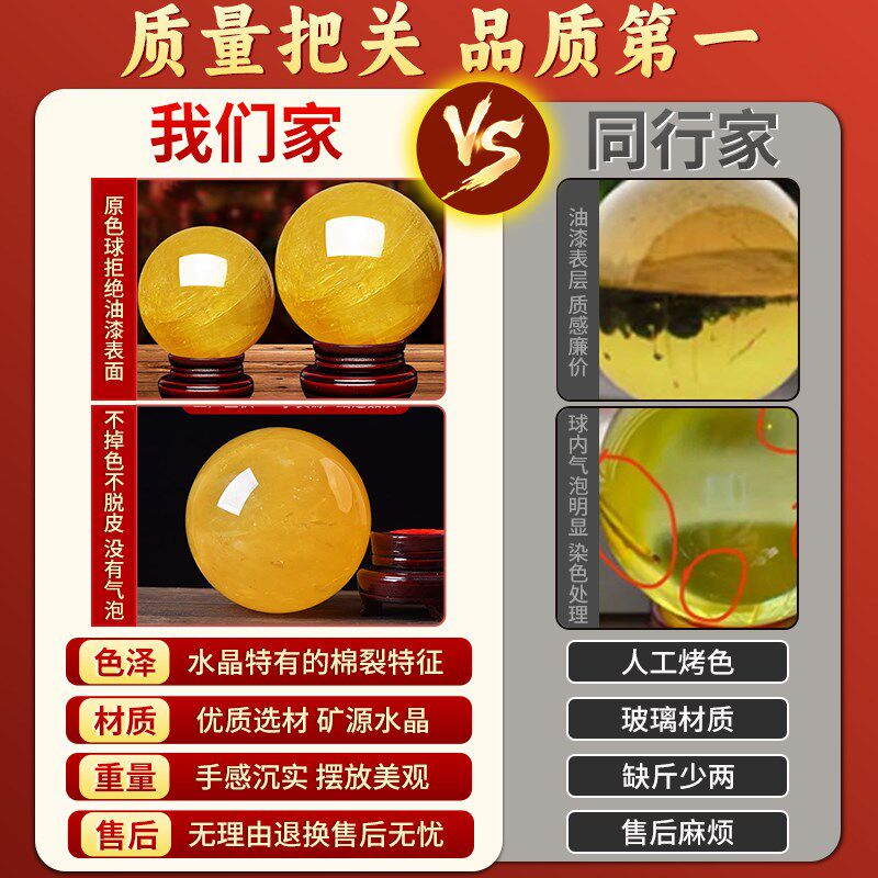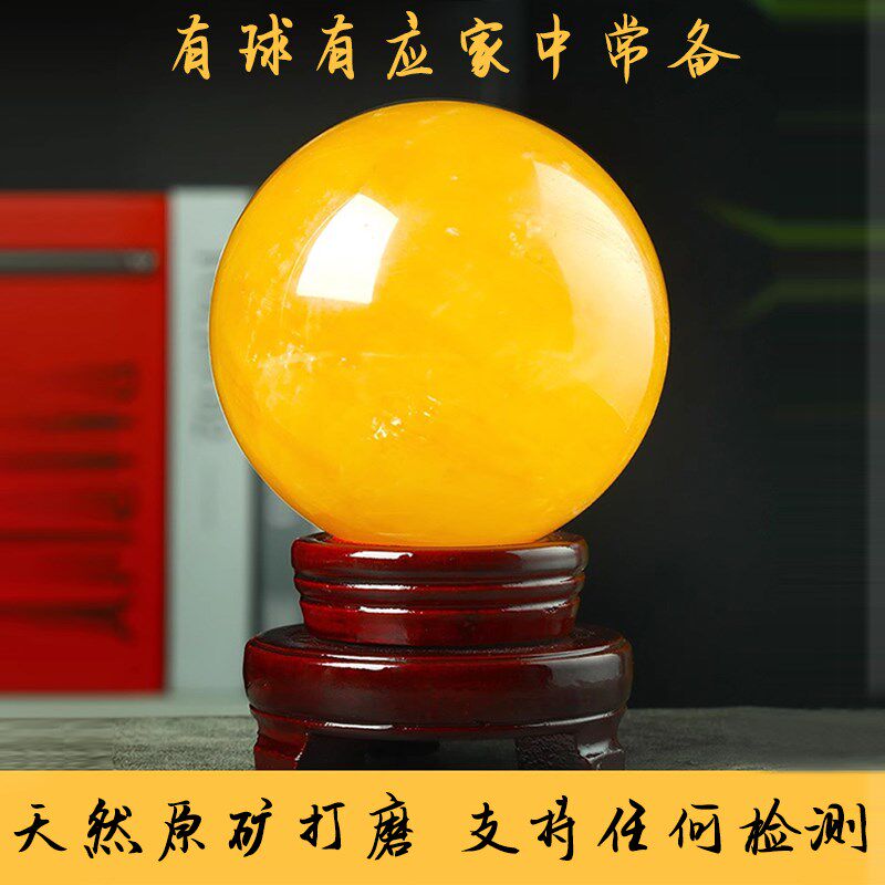 黄水晶球摆件天然原石高级感招财转运聚宝盆办公桌装饰黄色水晶球