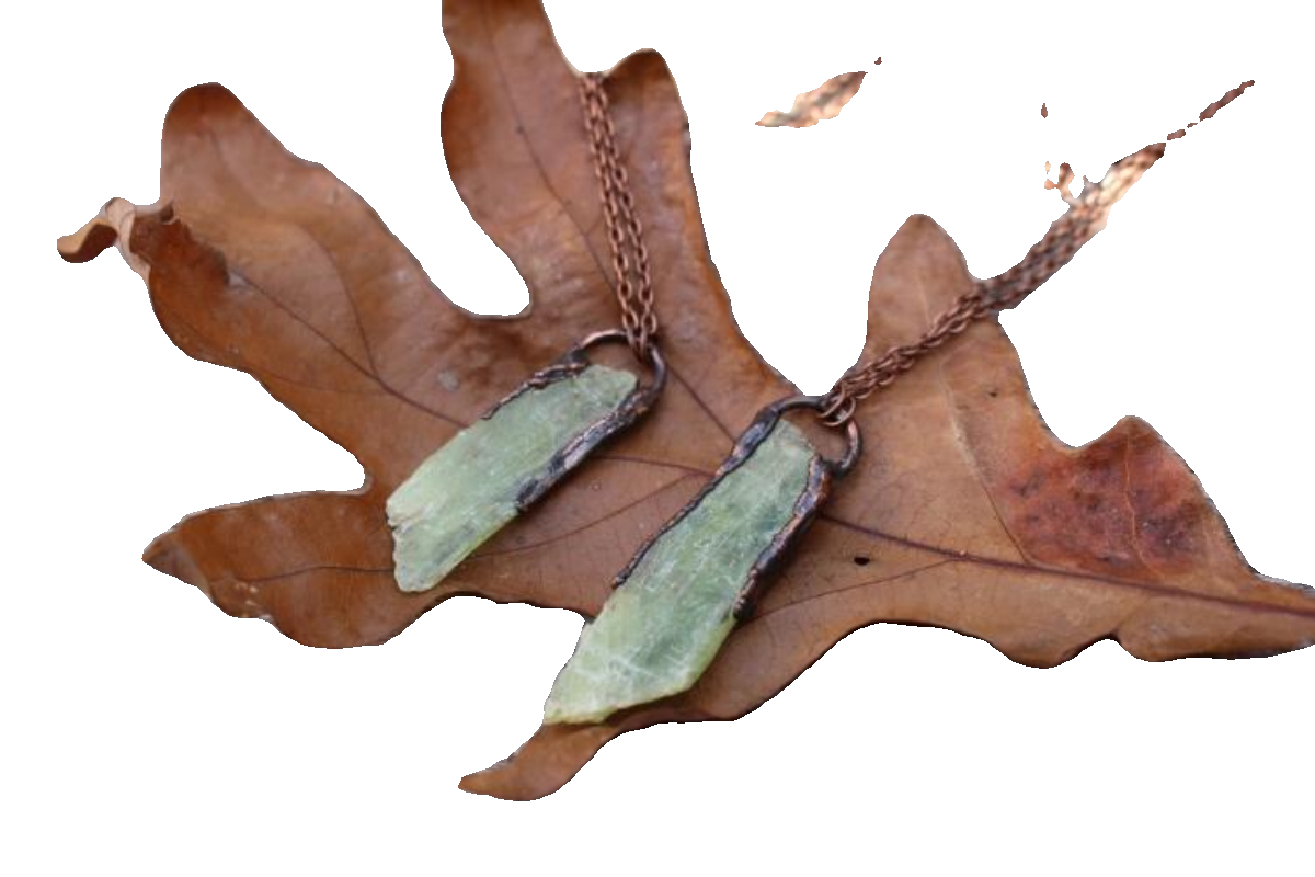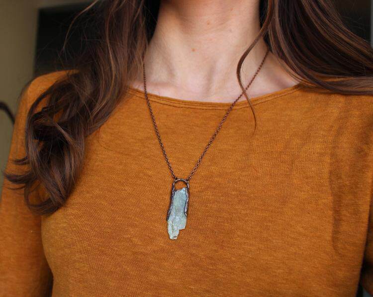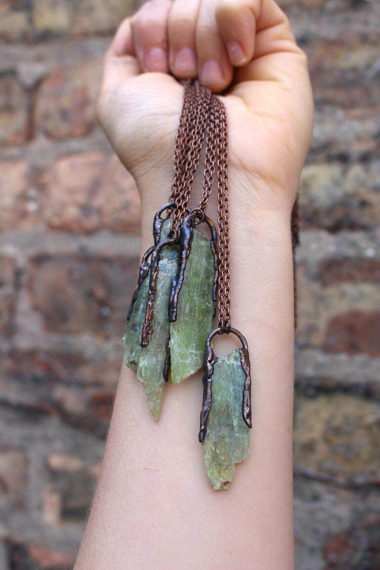 美国代购Necklace㊣ 手作波西米亚天然绿色蓝晶石镶嵌铜电铸项链