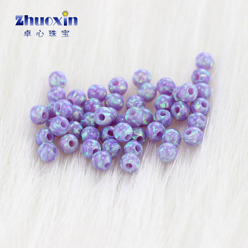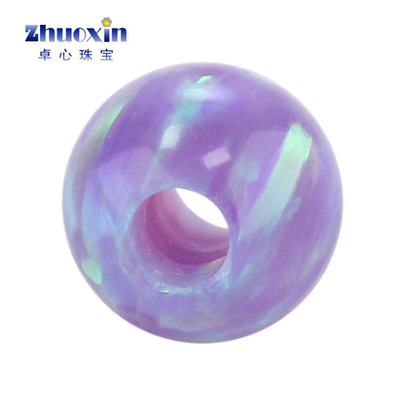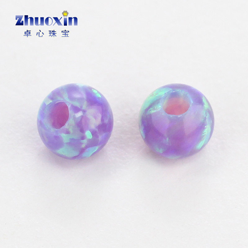 全孔圆珠紫色绿彩欧泊石欧珀裸石 球形珠子合成澳宝通孔OP40