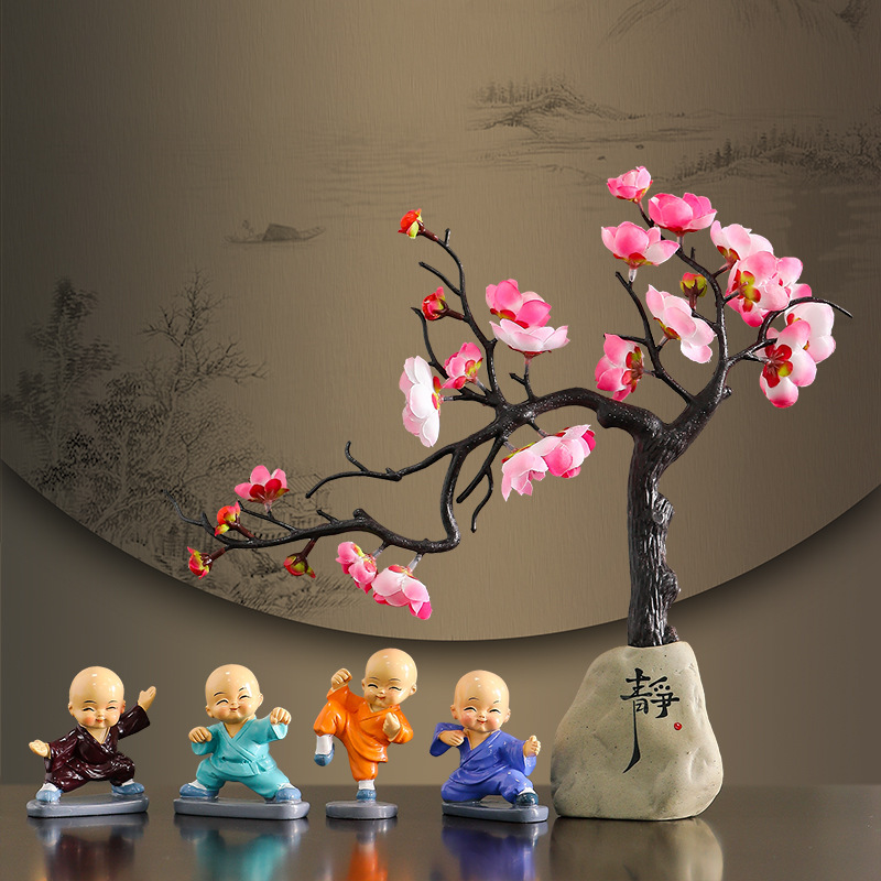中式家居腊梅小和尚摆件仿真干花客厅玄关办公室桌面创意摆饰用品