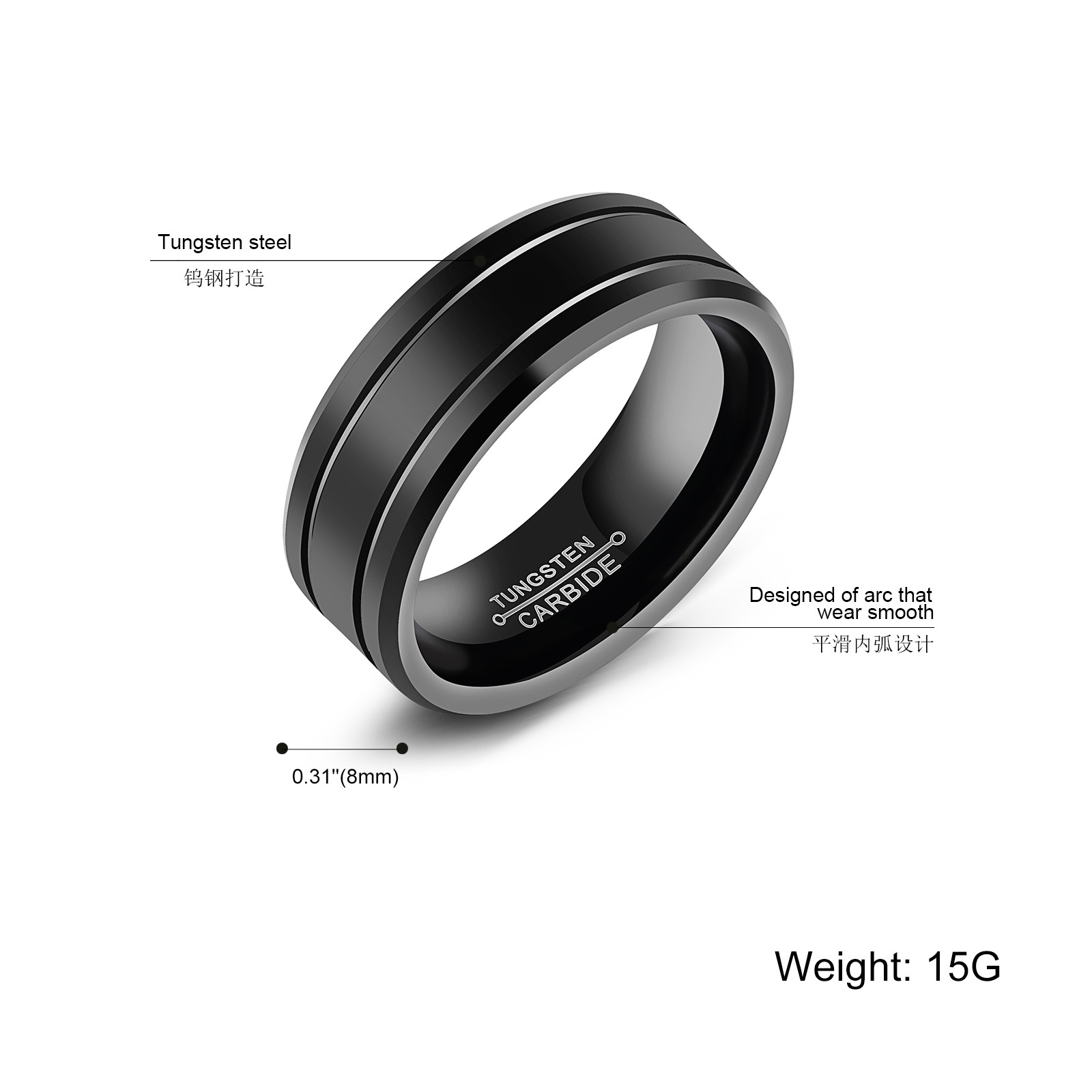 时尚简约黑色钨钢宽戒指霸气个性男戒食指指环潮人装饰戒子不掉色