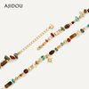 阿吉豆AJIDOU天然淡水珍珠项链多巴胺彩色石串珠颈链首饰品锁骨链