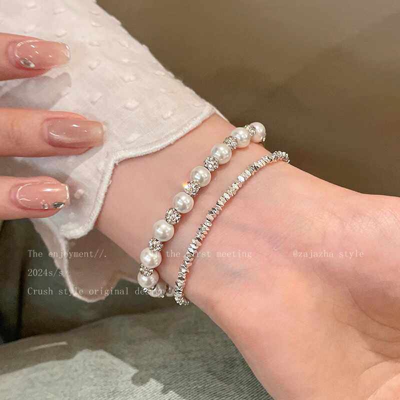 满天星镶钻球球手链女2024夏天小清新珍珠碎银子串珠手链闺蜜手串