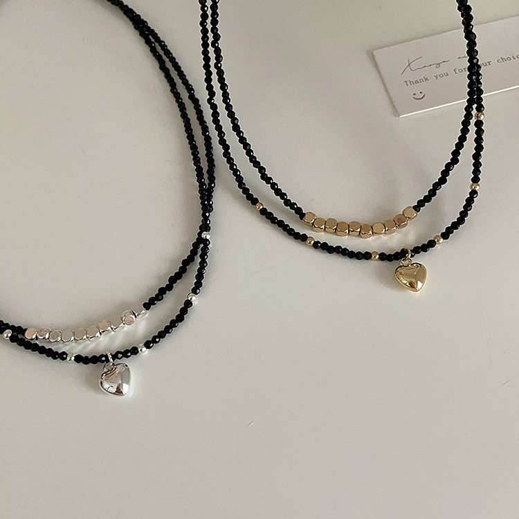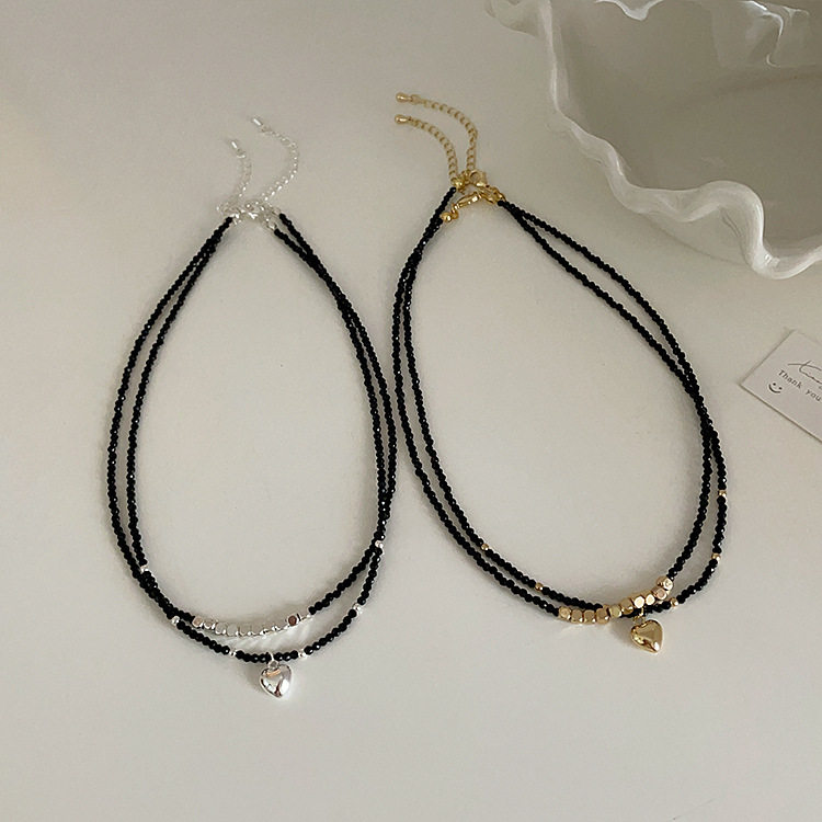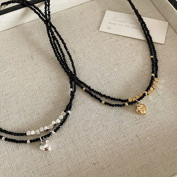黑色水晶金属爱心项链女小众设计复古个性简约百搭气质颈链锁骨链