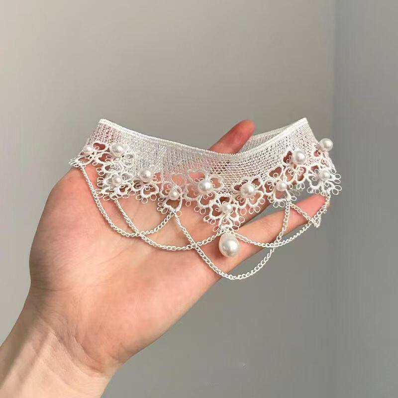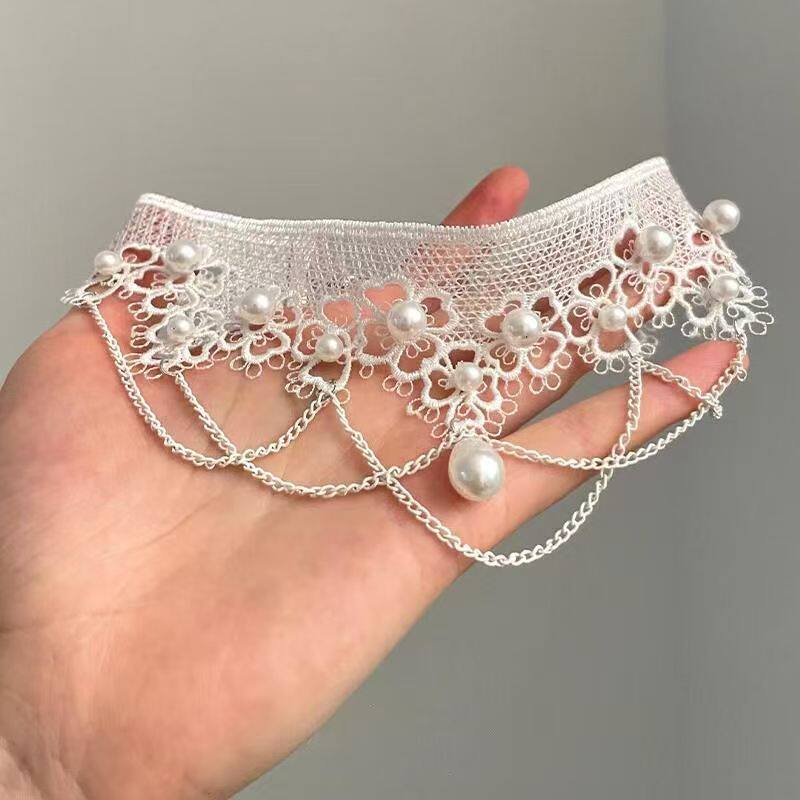 法式白色仿珍珠蕾丝项链女新款爆款颈链轻奢小众高级感锁骨链