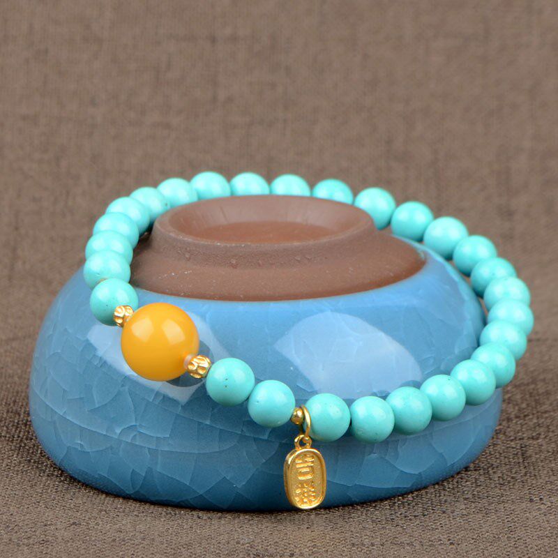 菱镁矿仿绿松石圆珠手串湖绿色单圈手链文玩饰品礼物
