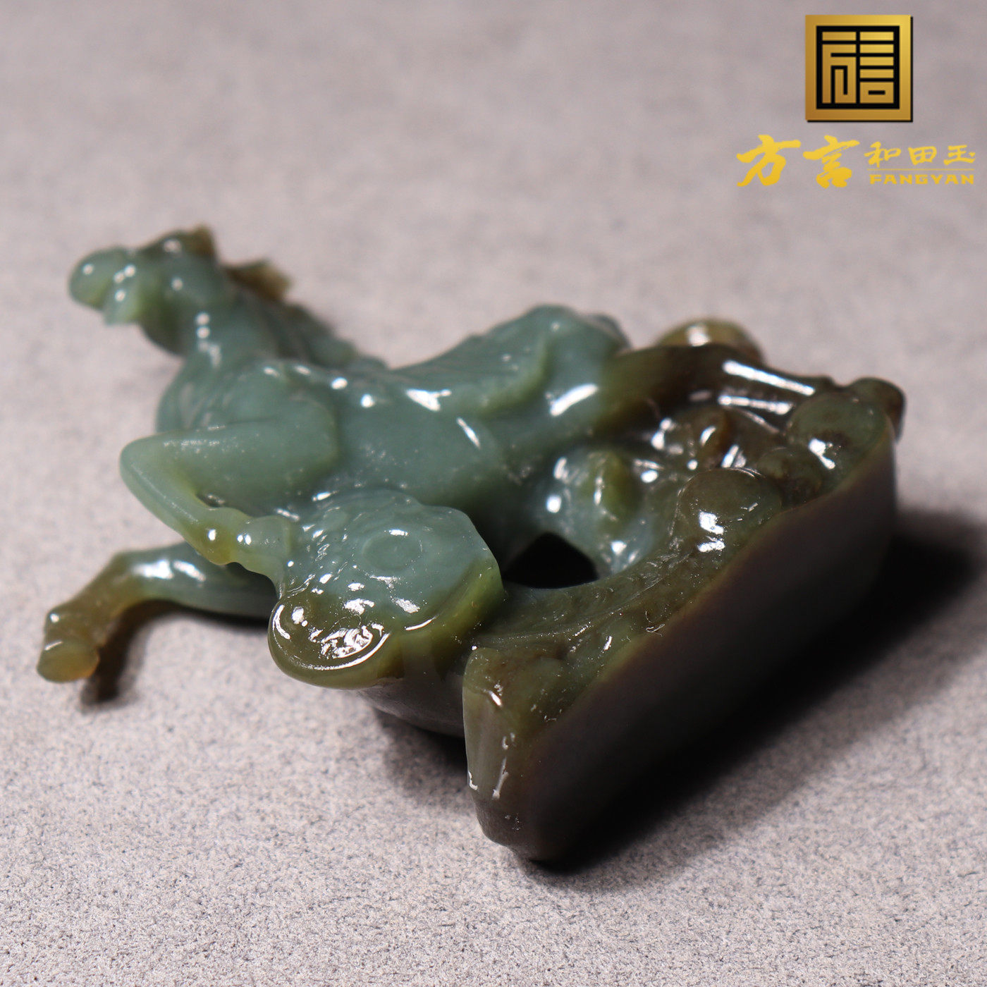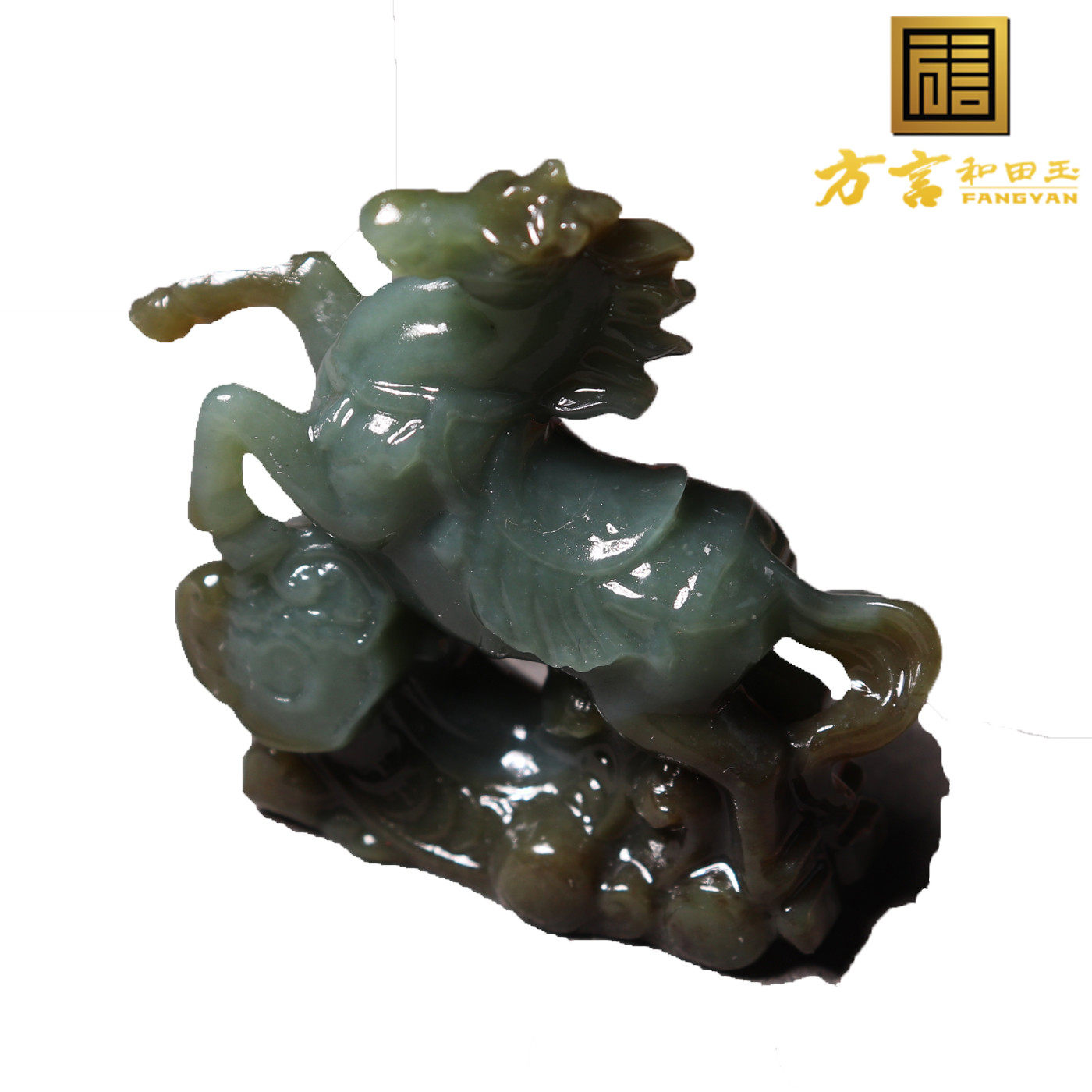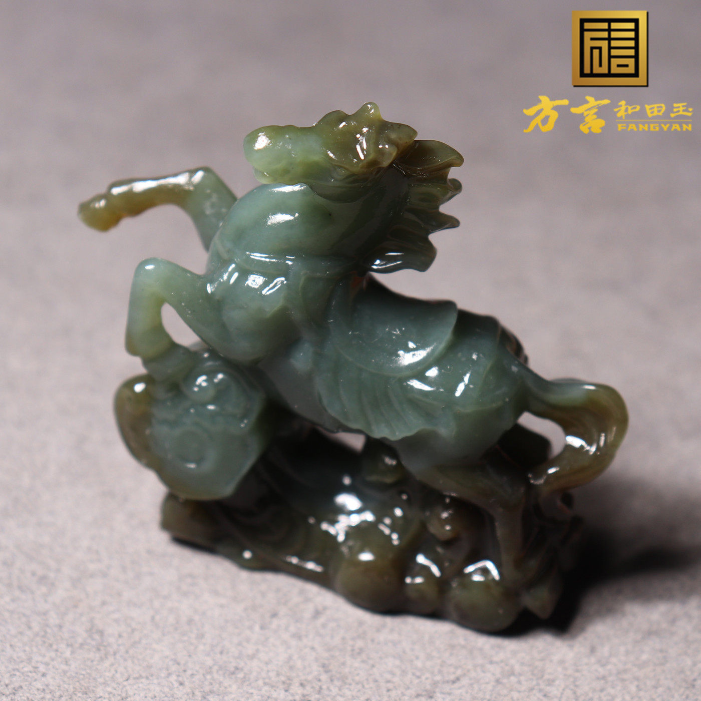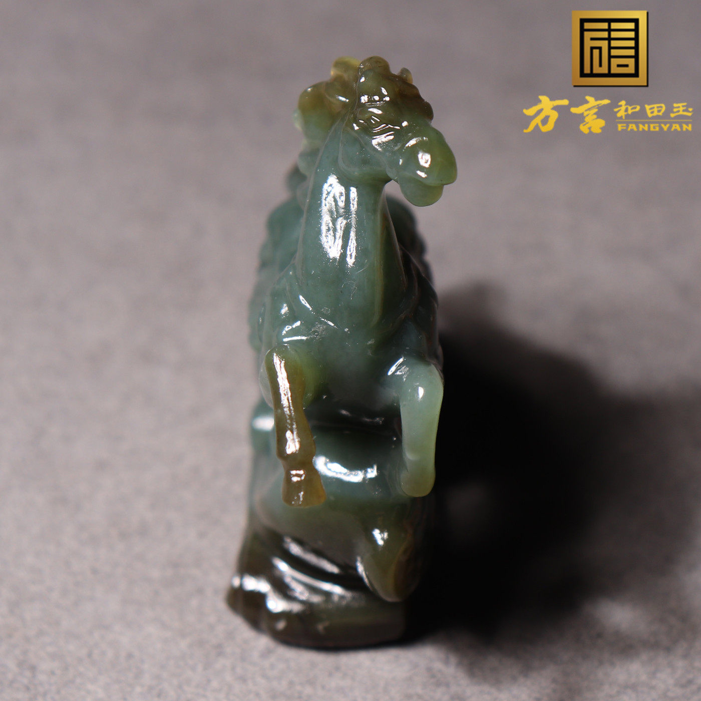 方言和田玉新疆且末料油润细腻蓝色基调带糖马到成功摆件手把件O2