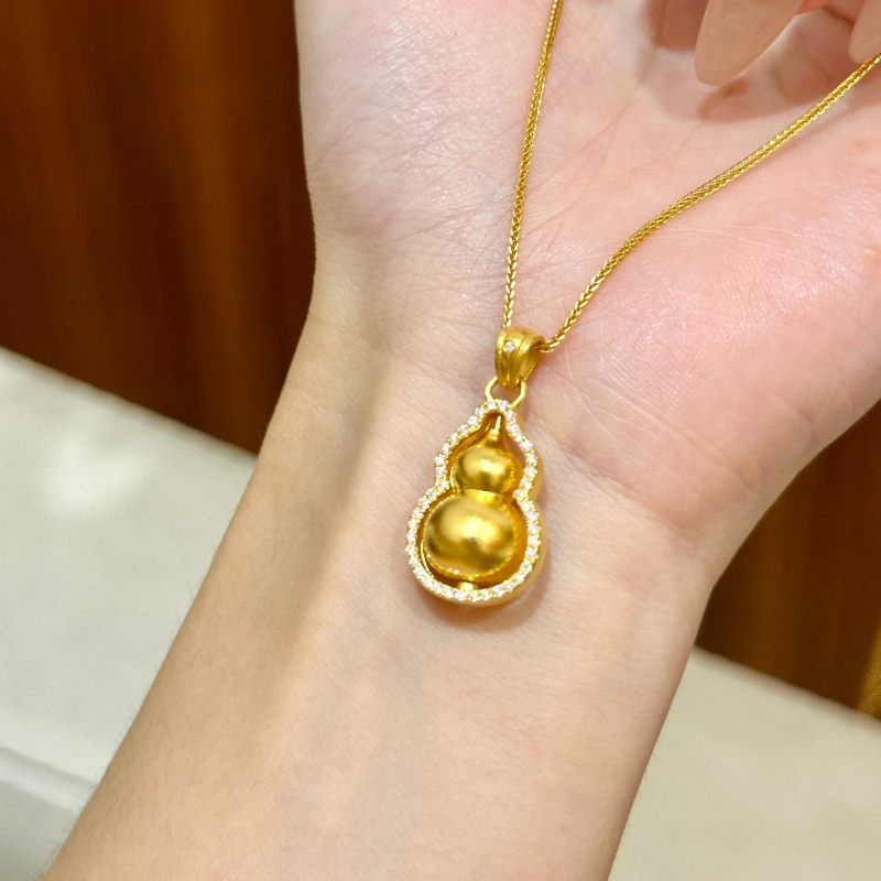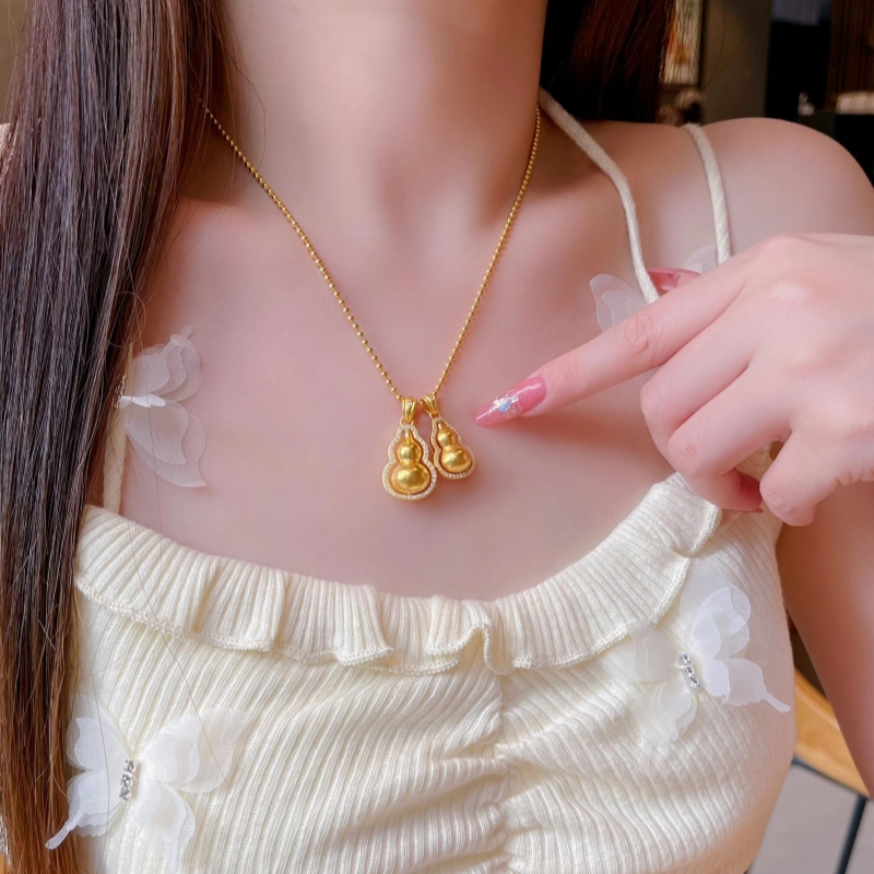 水贝黄金金店同款金包银旋转葫芦吊坠古法镶钻福禄项链锁骨链礼物