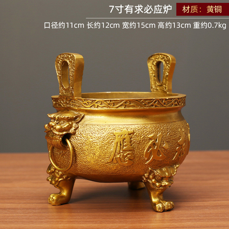 有求必应炉黄铜摆件家居供奉摆件客厅铜装饰品铜开业送礼店铺摆饰