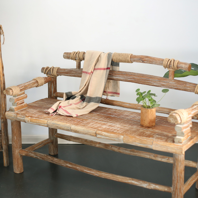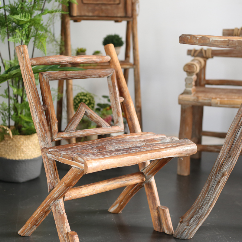 七茉 庭院桌椅复古做旧户外组合套装两三人装饰家具实木室内外