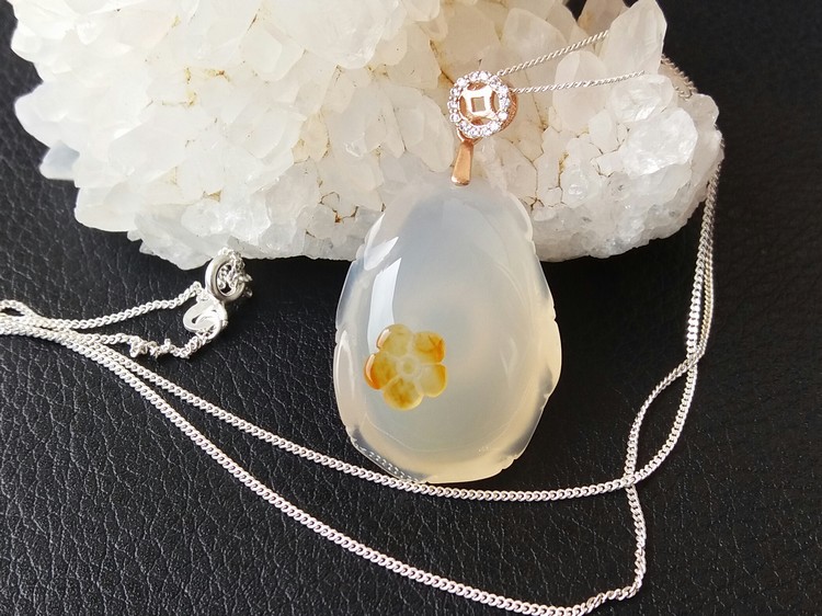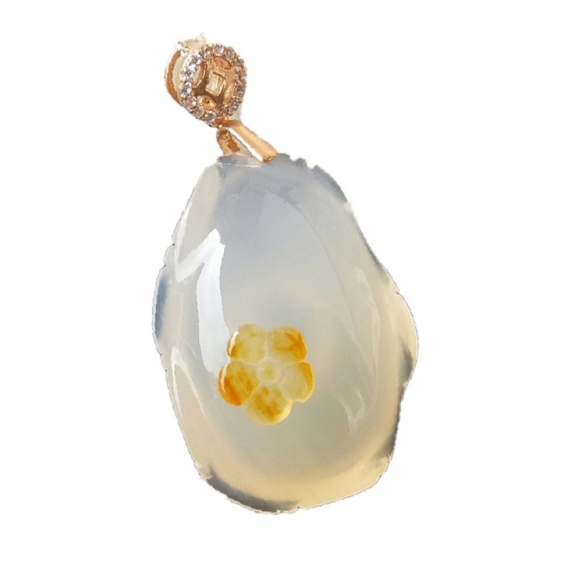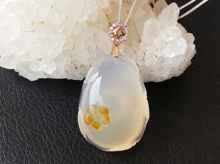 【玛瑙说】马料原色无烧纯天然冰彩玉髓俏色雕花件吊坠项坠少女款
