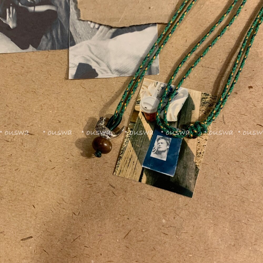 ouswa原创【peace】和平鸽手工大拉干沉香复古小众绿色可调项链绳