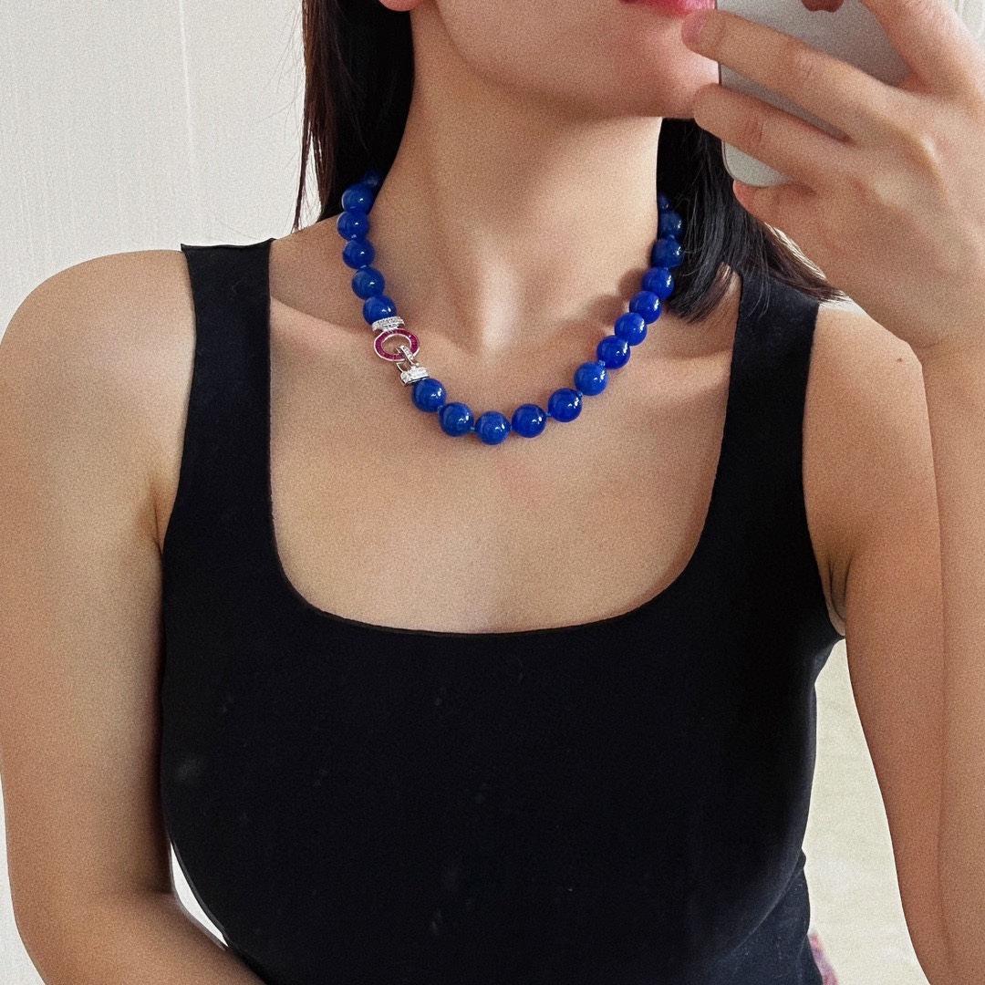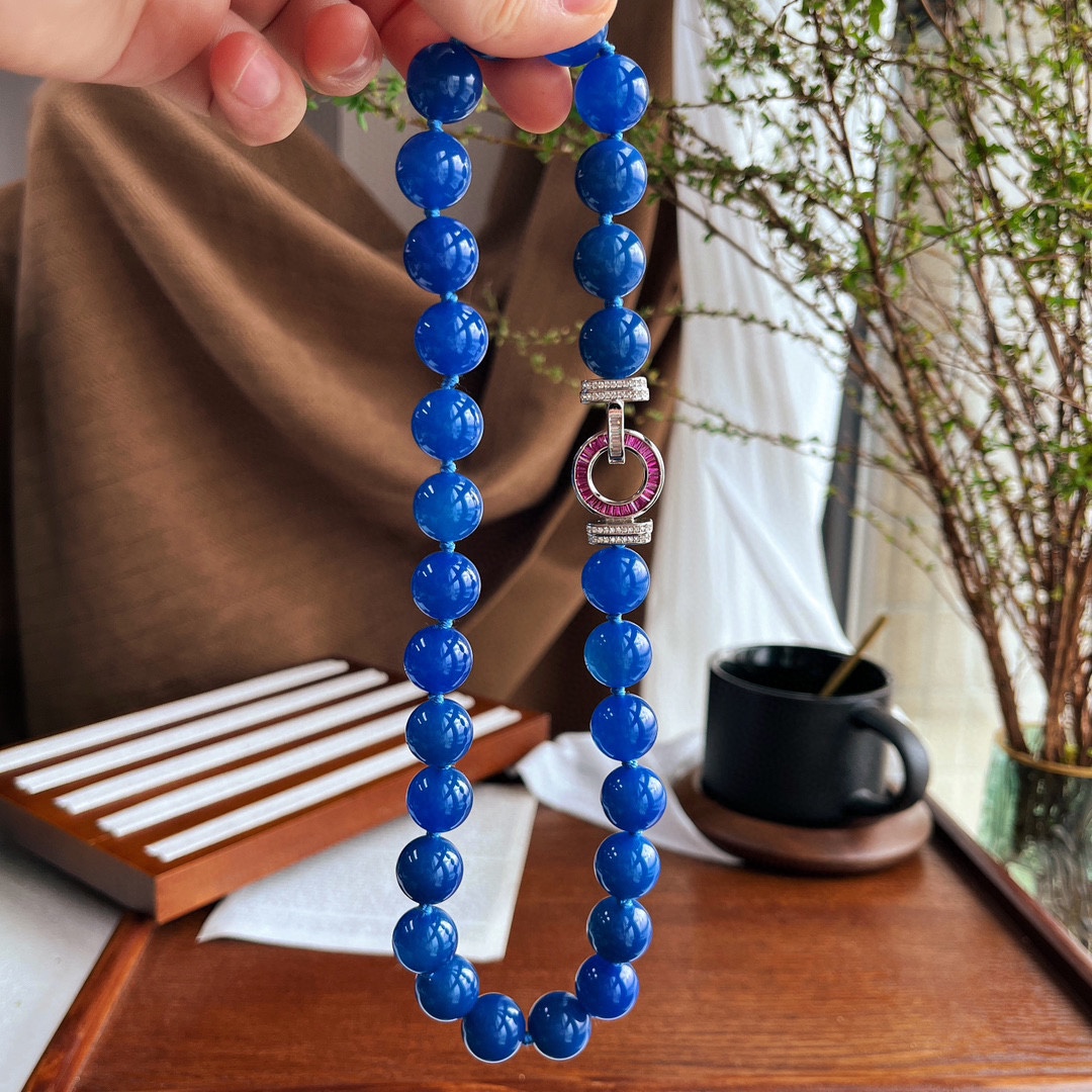 14mm大颗粒深蓝蓝色妖姬蓝玉髓项链 颗颗打结小众