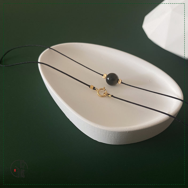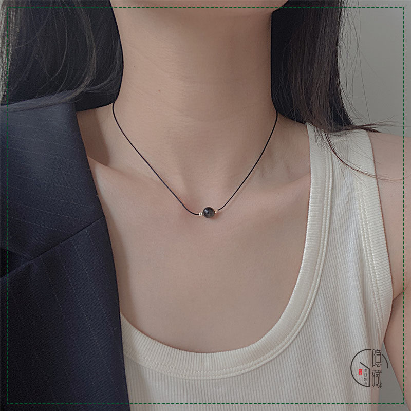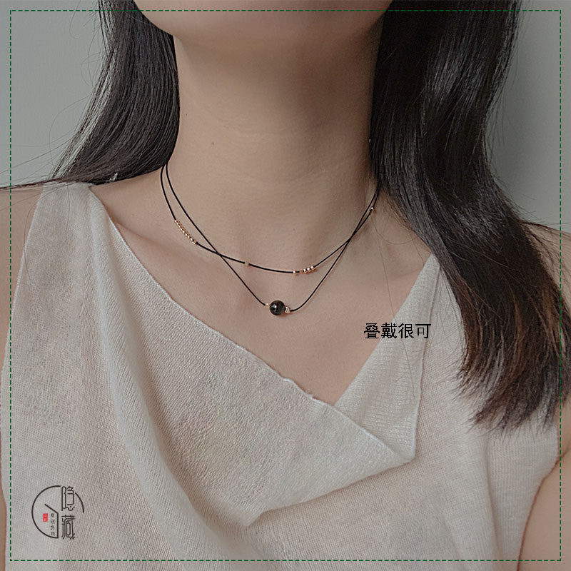 【隐藏·居然是项链‖】原创极细黑曜石项链女黑色小众锁骨链简约