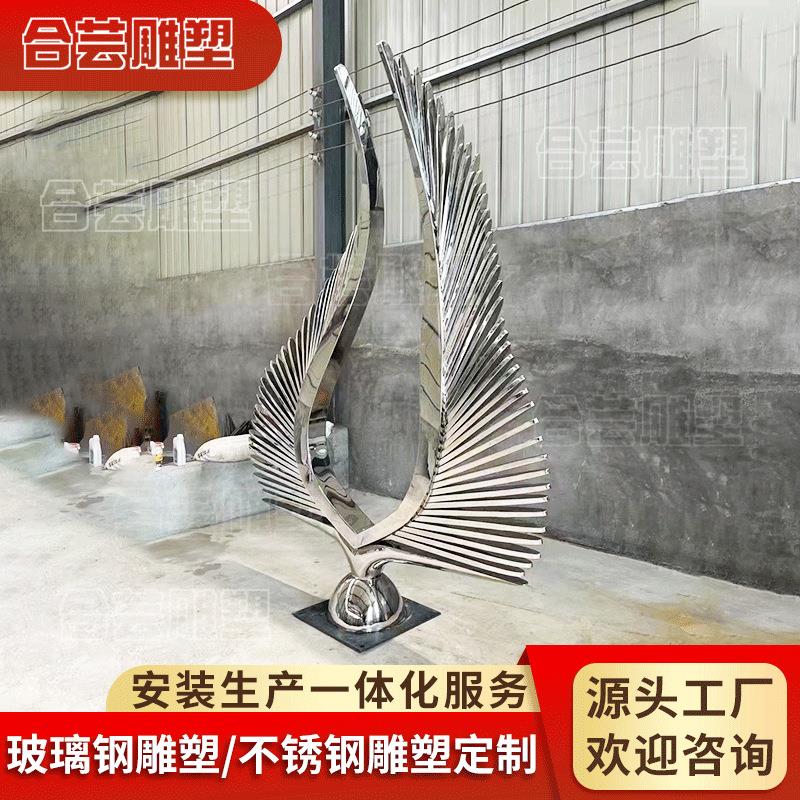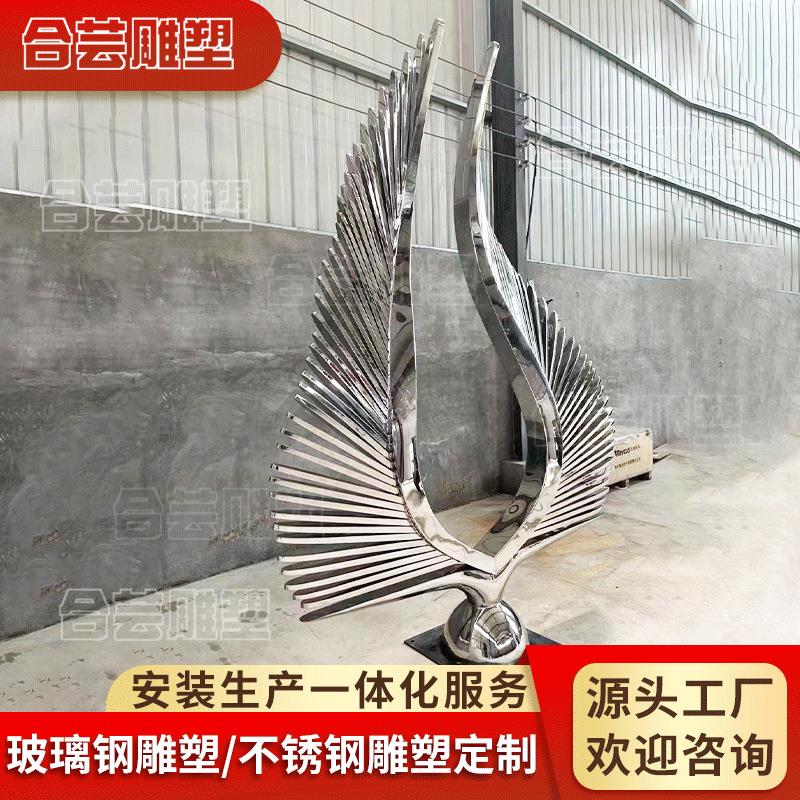 不锈钢雕塑户外大型展翅园林景观金属镜面镂空球发光商场艺术摆件