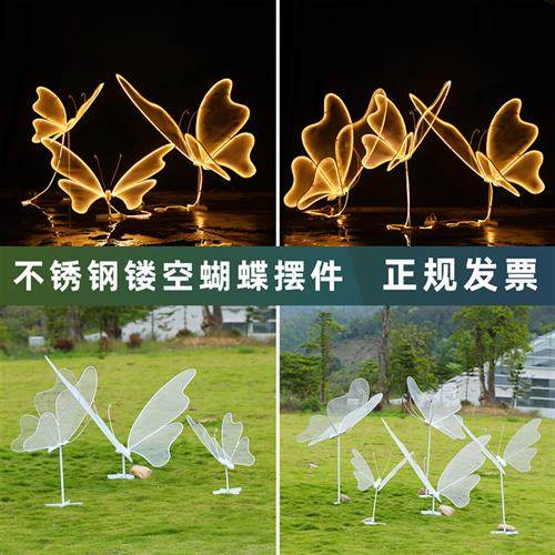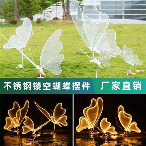 户外园林景观不锈钢蝴蝶摆件公园售楼处铁艺镂空昆虫雕塑发光装饰