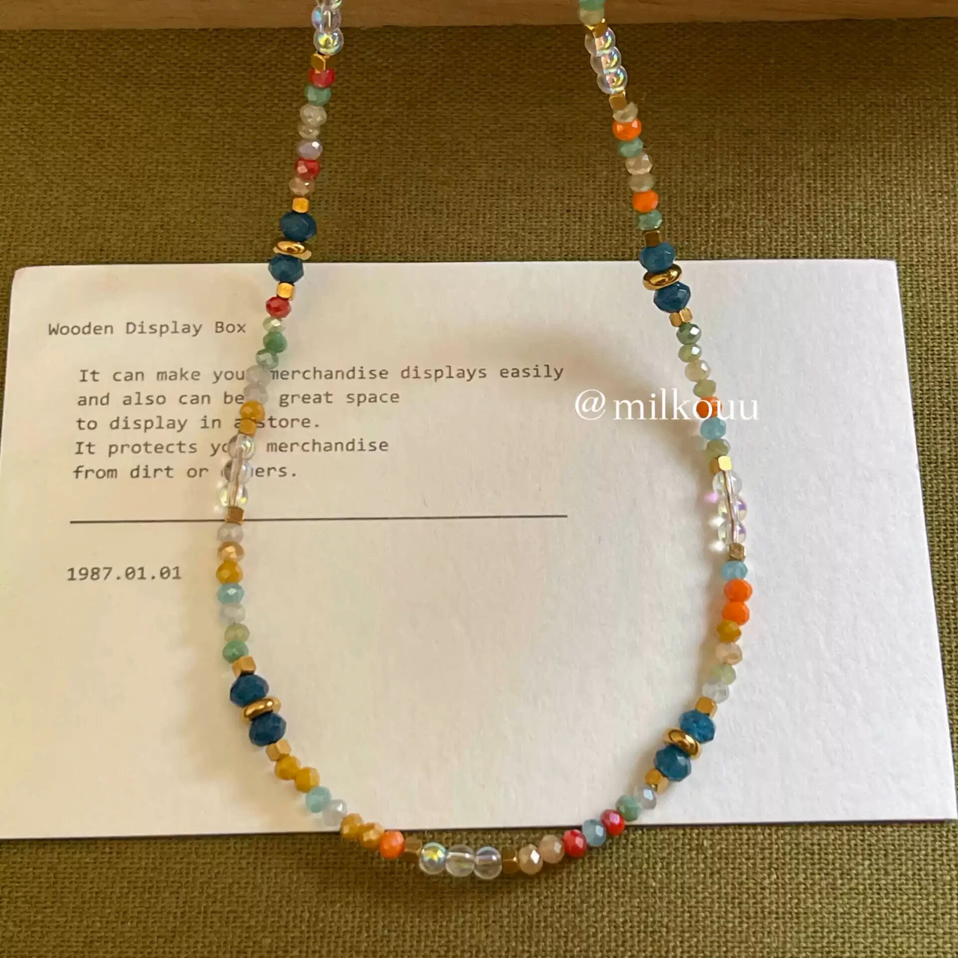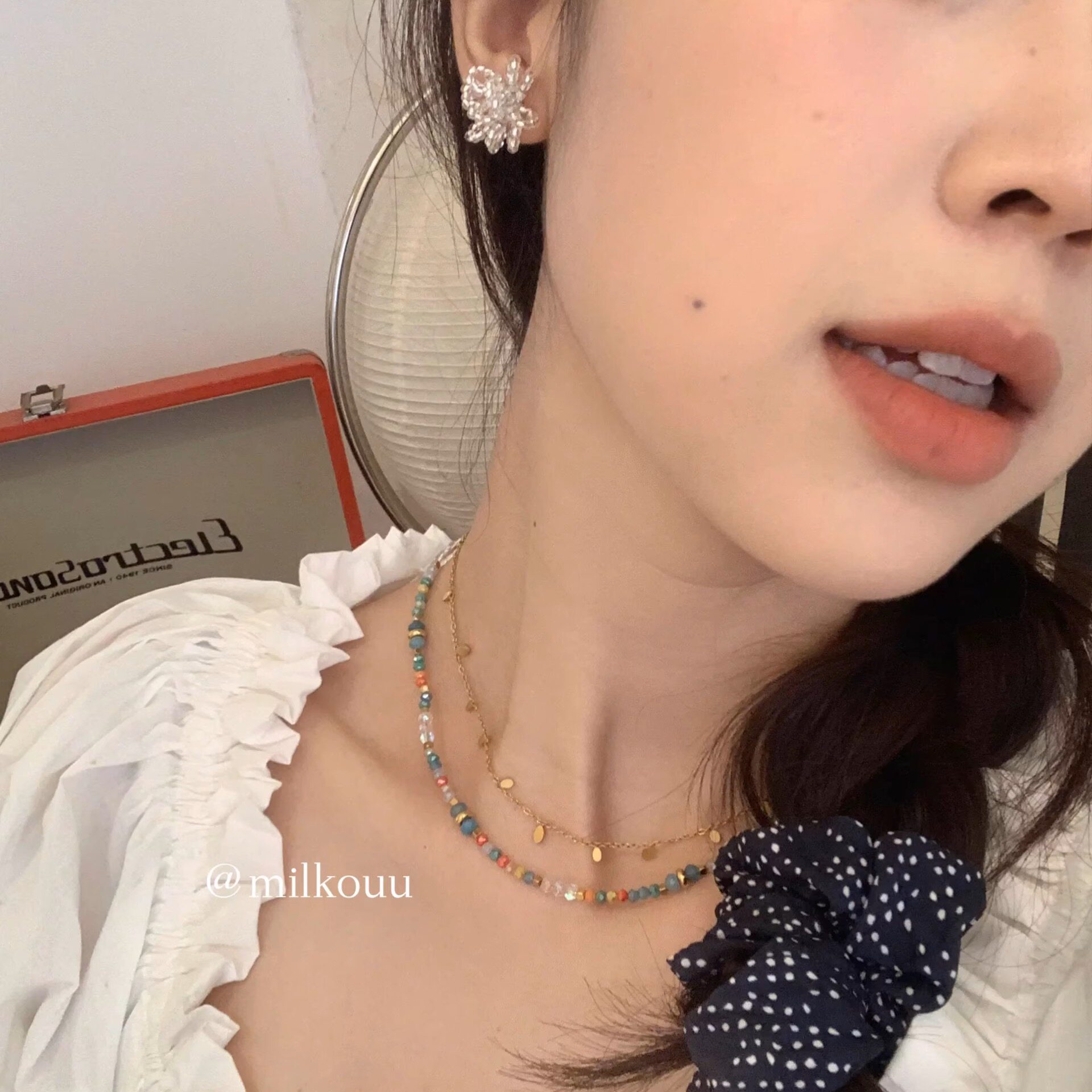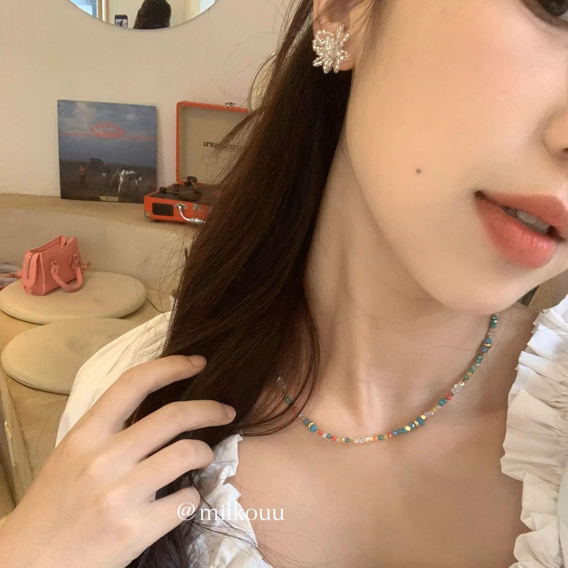 milkouu/清新夏日多巴胺透明彩色天然原石系蓝色串珠项链锁骨链