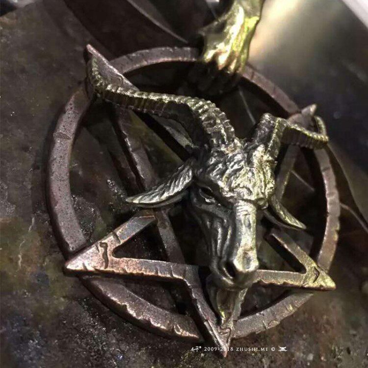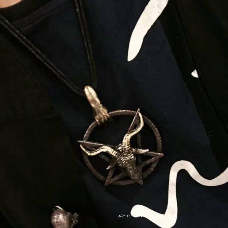 主师原创手工暗黑系骷髅新款恶魔之手925银五芒星撒旦羊头吊坠