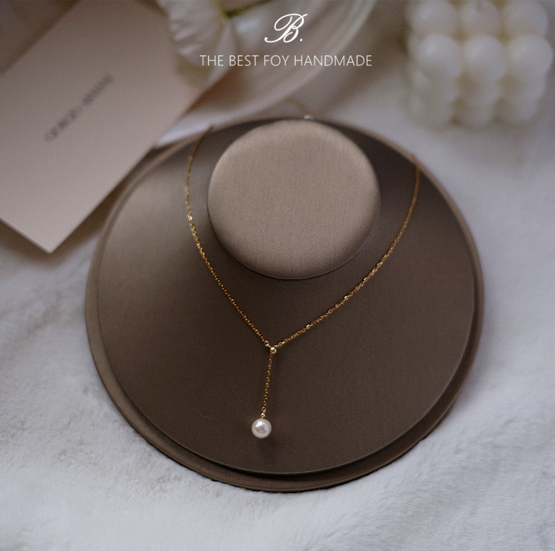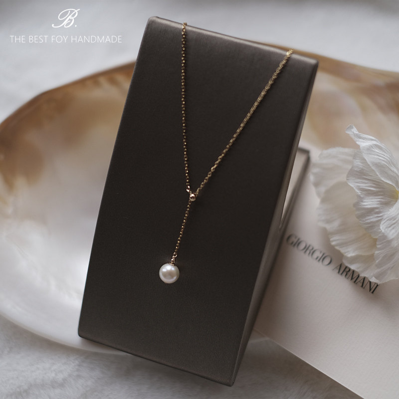 不掉色美国进口14k包金超亮白珍珠项链女可调节Y字锁骨链毛衣链