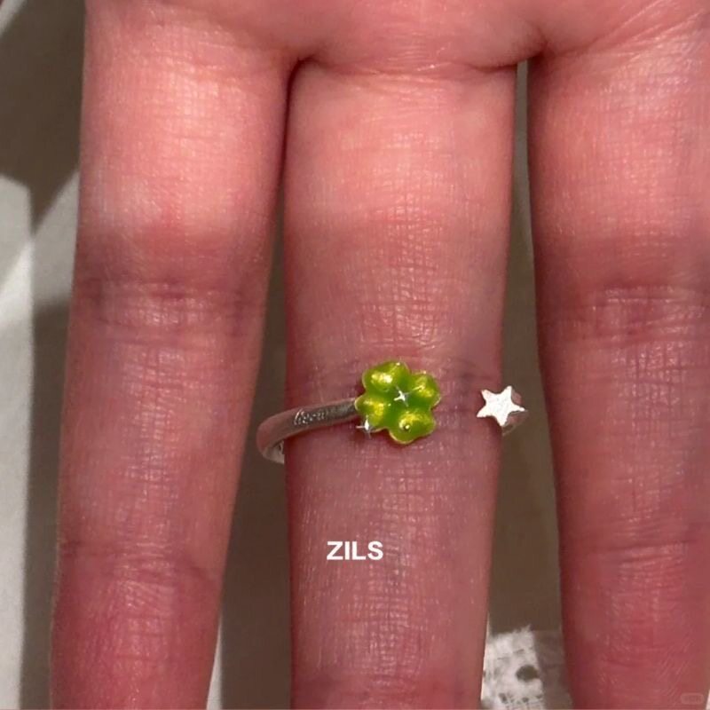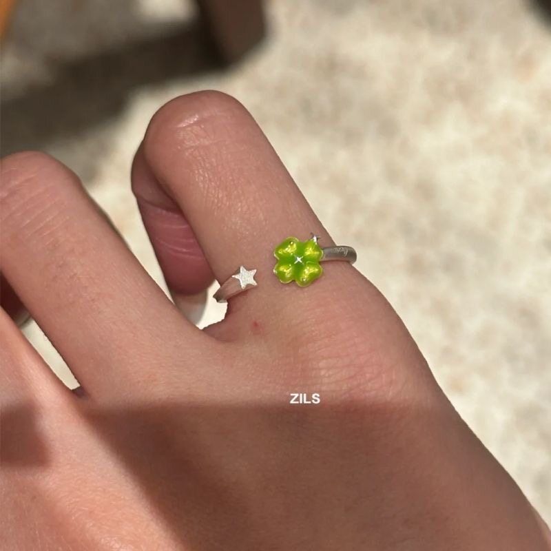 清冷感绿色四叶草星星戒指女款轻奢高级感指环小众简约百搭食指戒