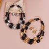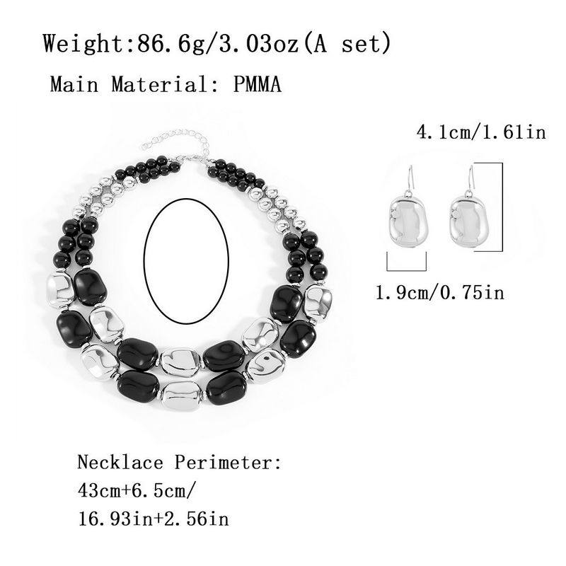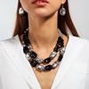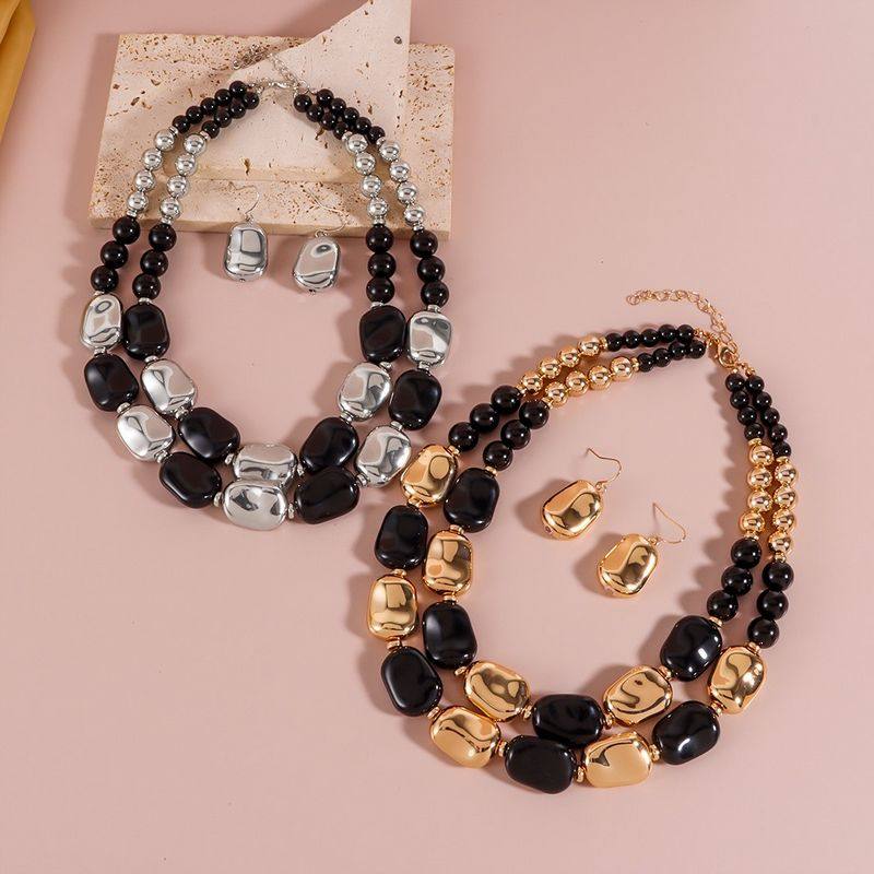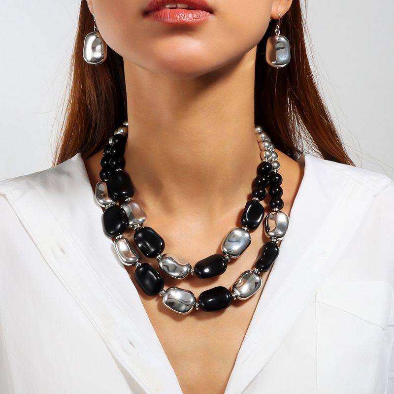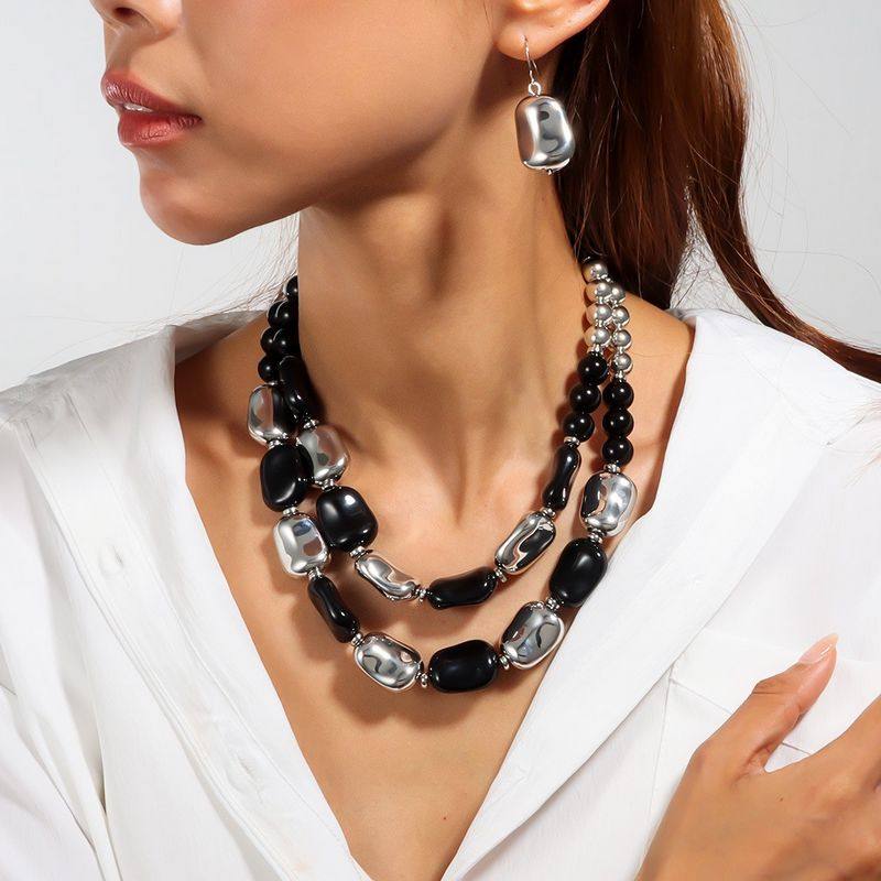 复古朋克夸张拼接串珠项链双层几何珠子锁骨链耳环个性网红装饰女