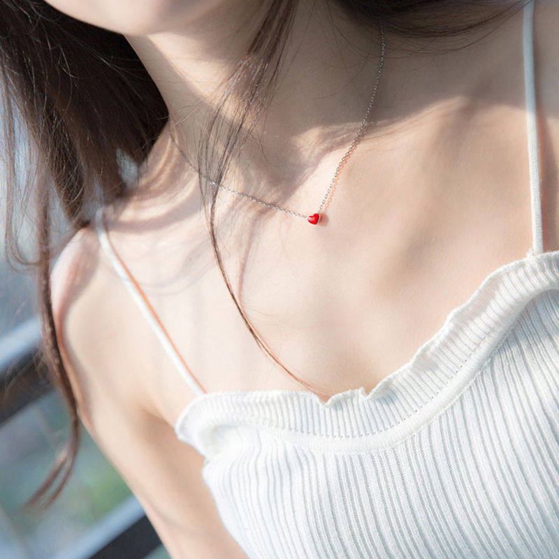红色小红心项链女韩版简约个性心形桃心爱心吊坠锁骨链潮网红饰品
