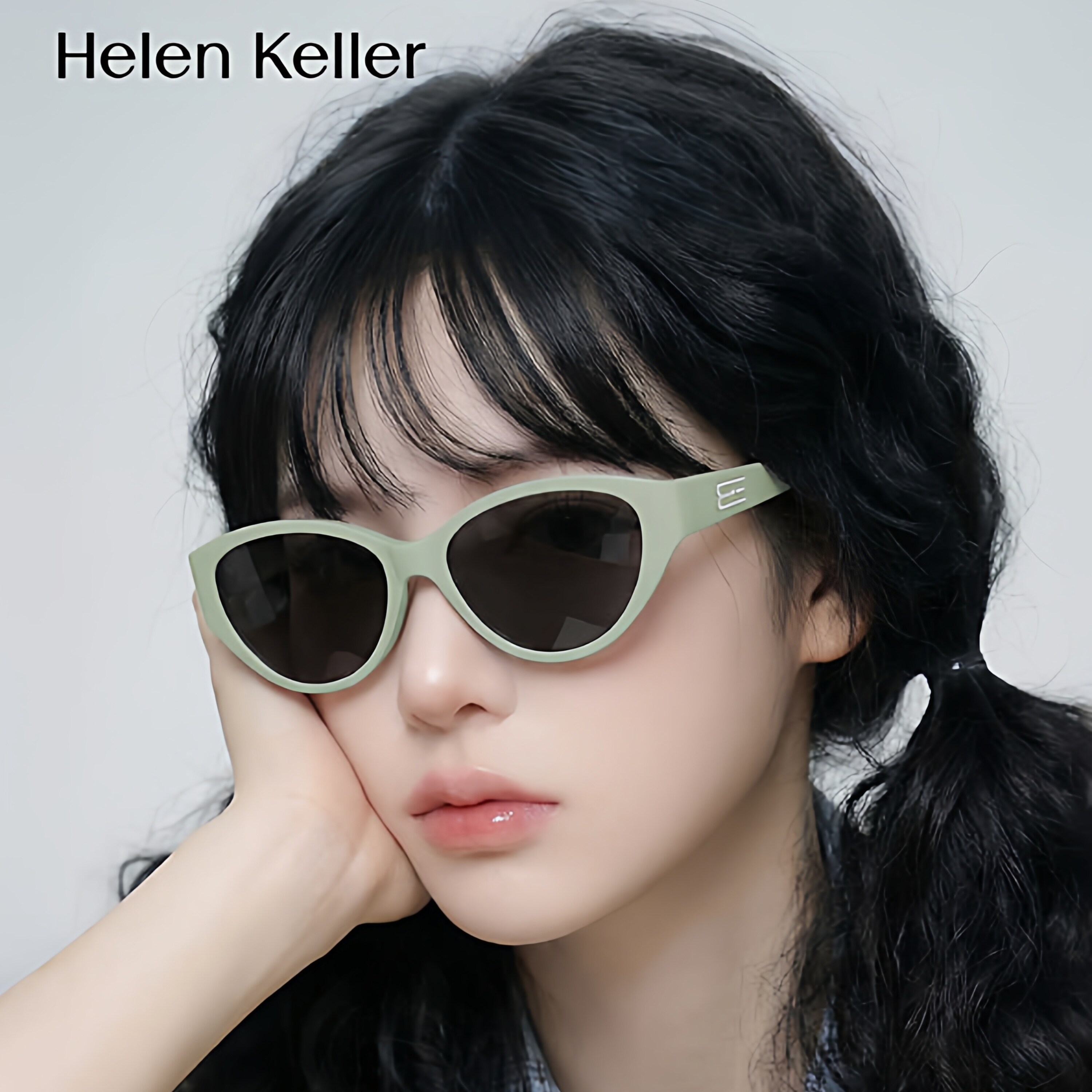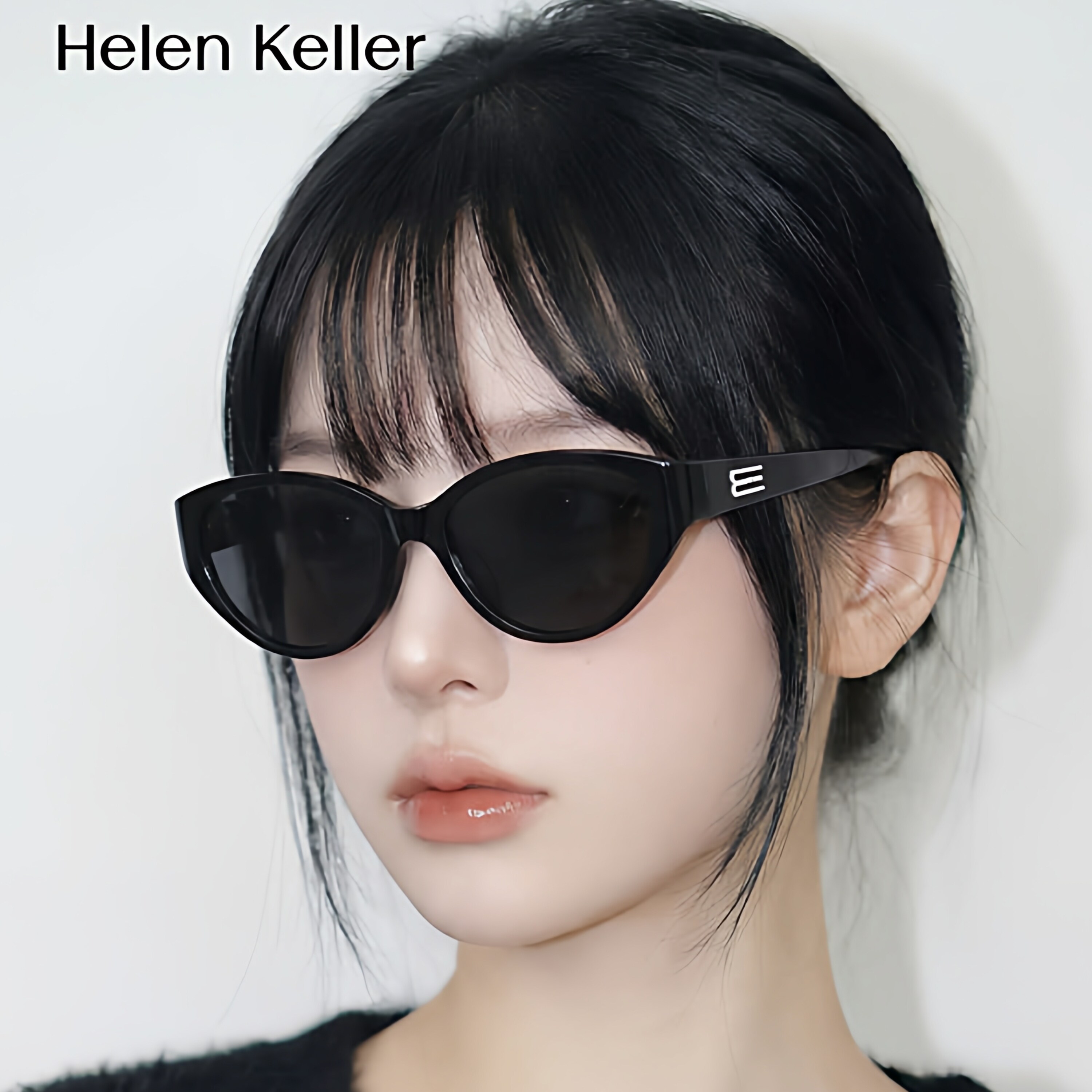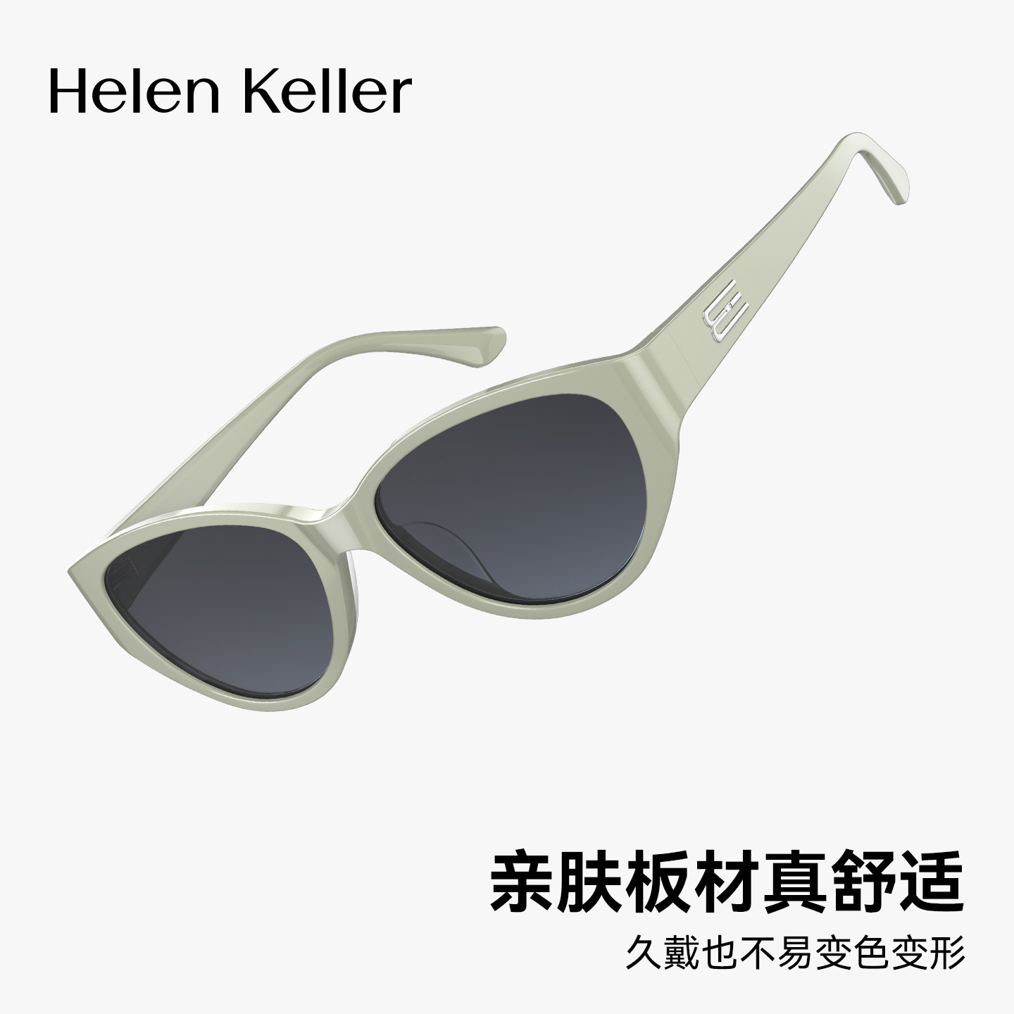 海伦凯勒白框墨镜女款2026新款带度数防紫外线偏光太阳眼镜