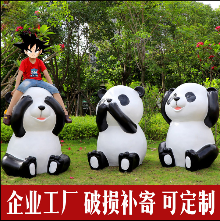 户外仿真花园幼儿园园林景观装饰动物卡通足球熊猫玻璃钢雕塑摆件
