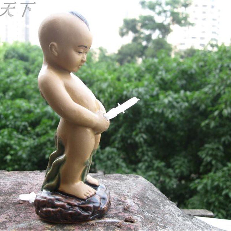 假山盆景配件上水石陶瓷尿童鱼缸摆设喷水小孩人物摆件水族装饰品