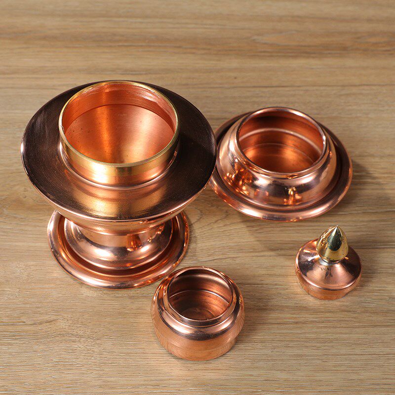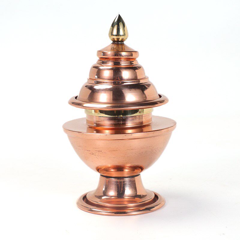 光面红铜尖米盒糌粑盒家用储物罐米罐民族风宝瓶桌面家居摆件