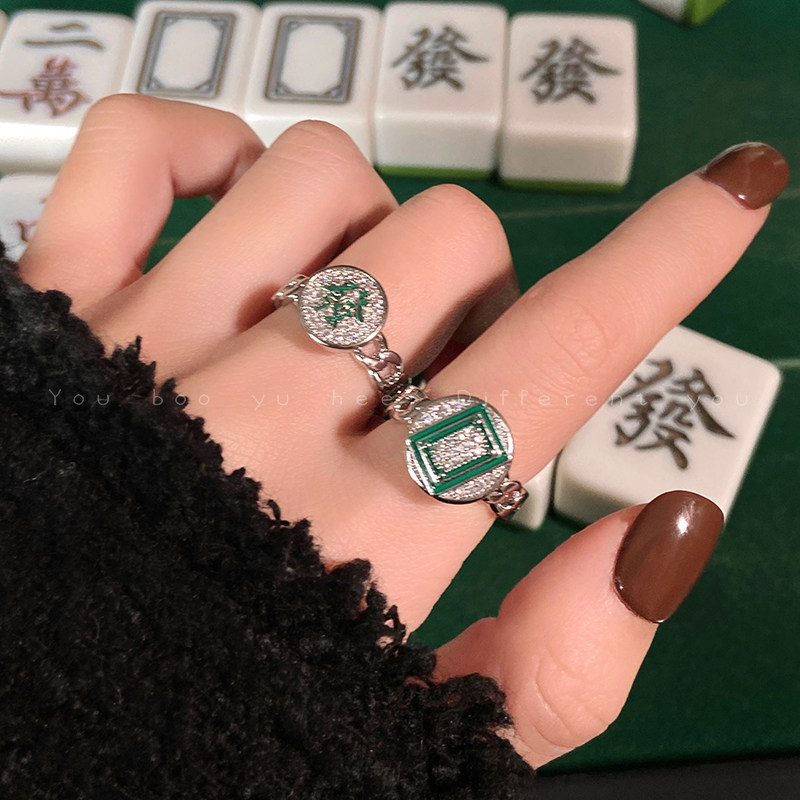 中發白麻将开口戒指女新中式轻奢高级精致食指戒时尚小众设计指环