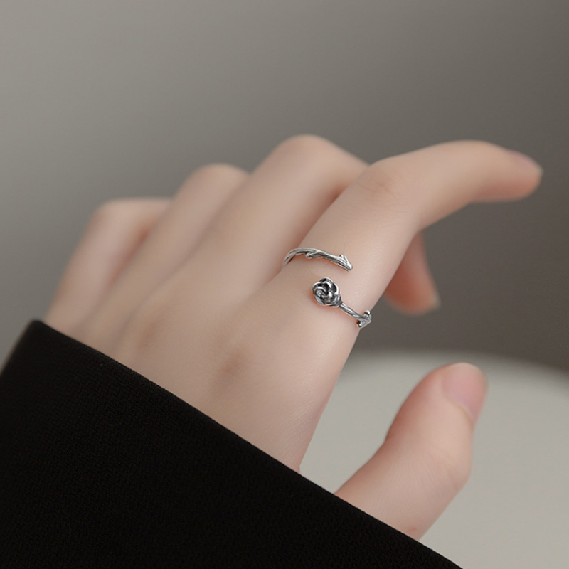 猫蛰925纯银尾戒指环女小众设计甜酷暗黑轻奢高级感玫瑰花学生党