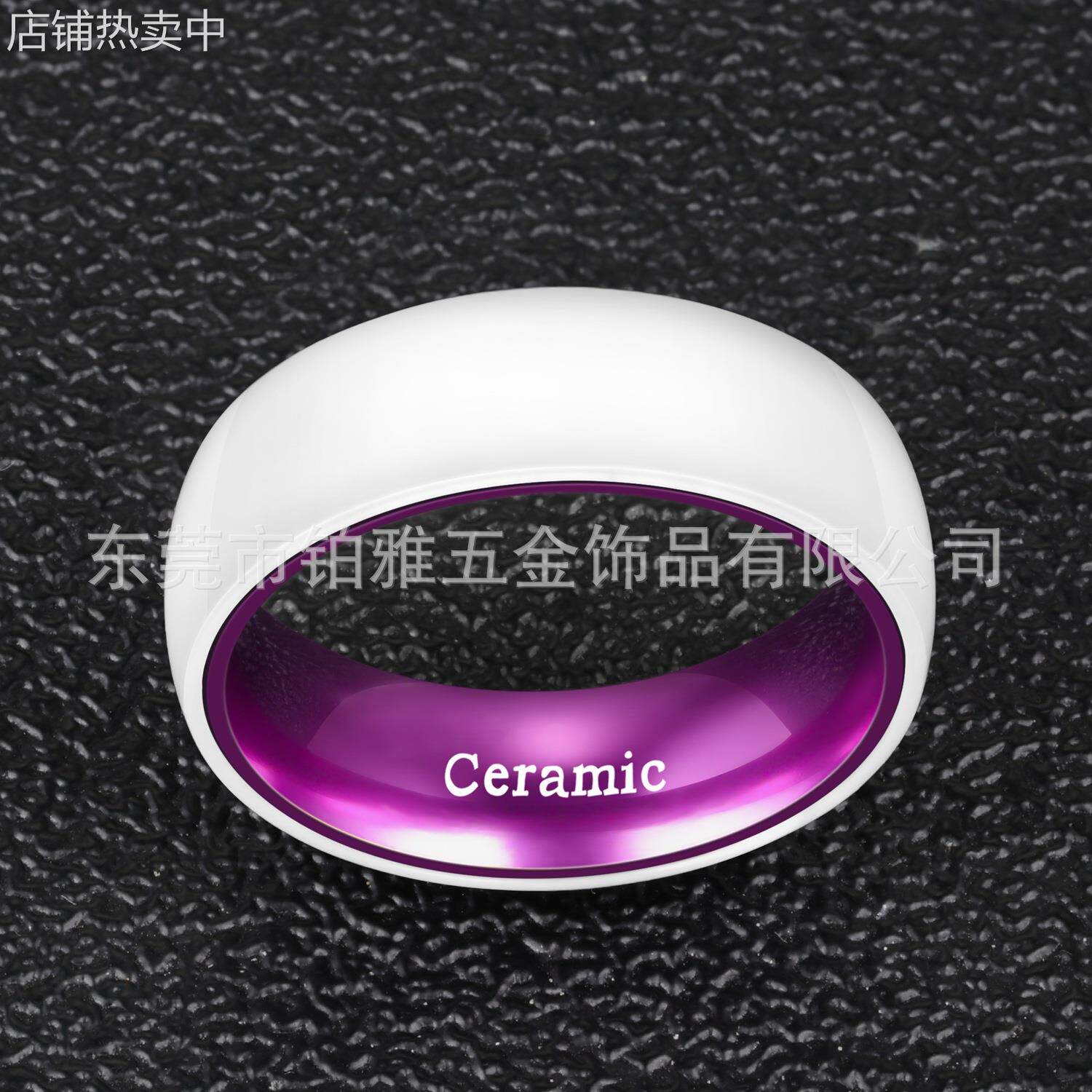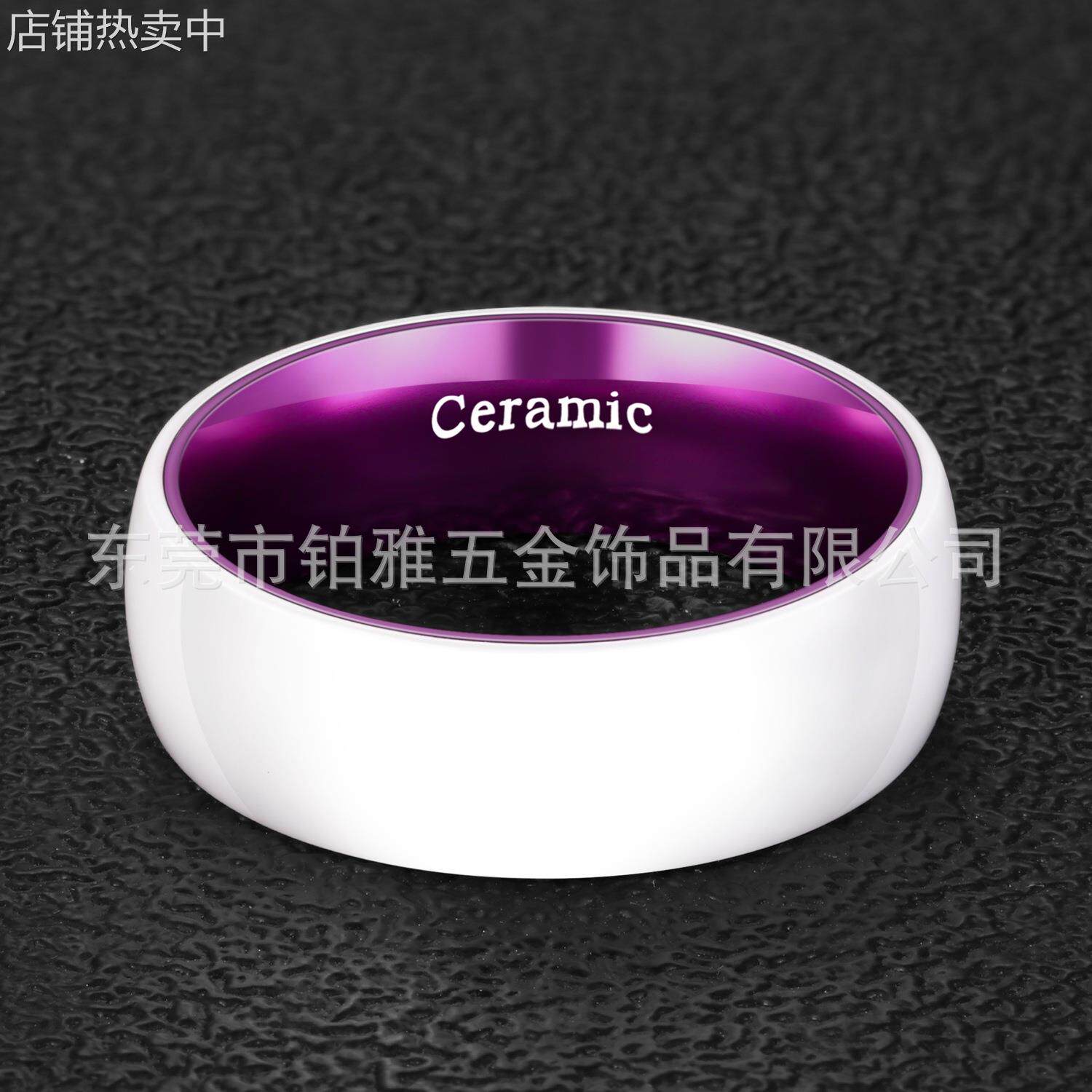跨境电镀 8mm白色陶瓷外壳指环紫色铝内圈戒指 情侣戒指士戒指