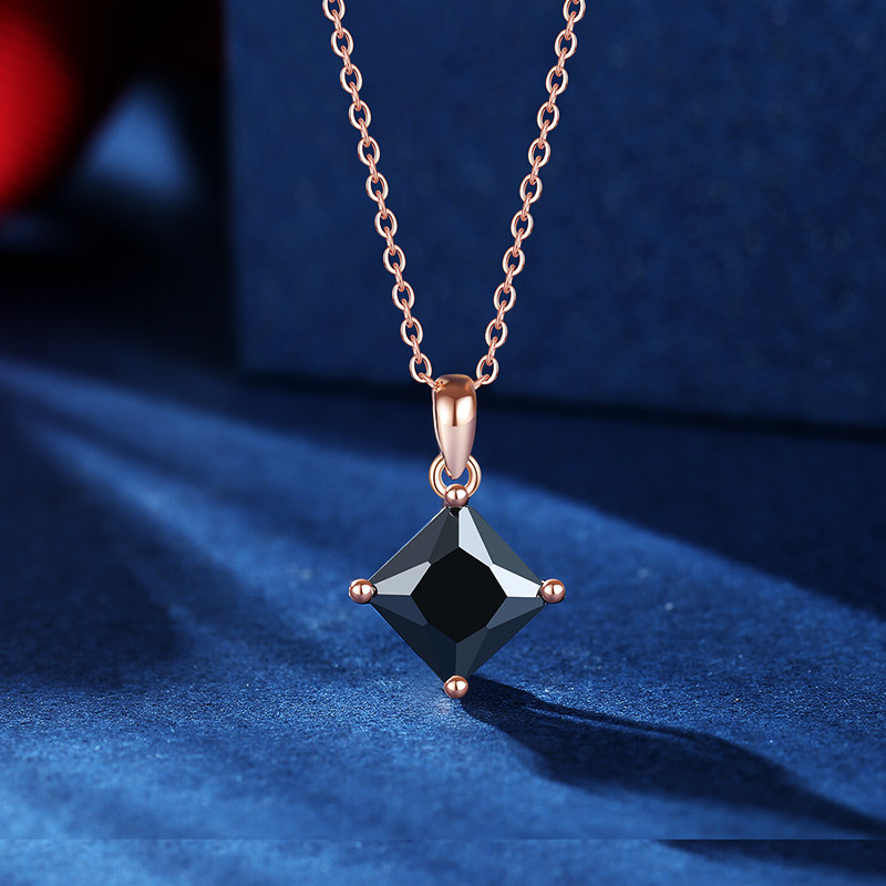 黑色925银项链女锁骨链吊坠方块几何菱形小众设计个性潮人冷淡风