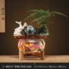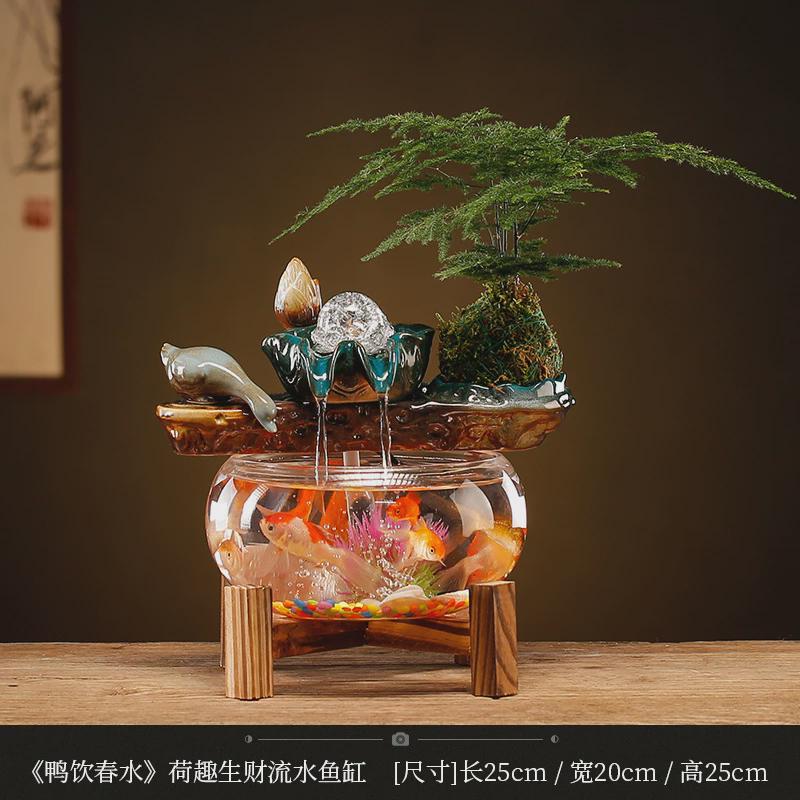 水循环流水摆件书房客厅办公室养金鱼缸圆形客厅小型桌面超白玻璃