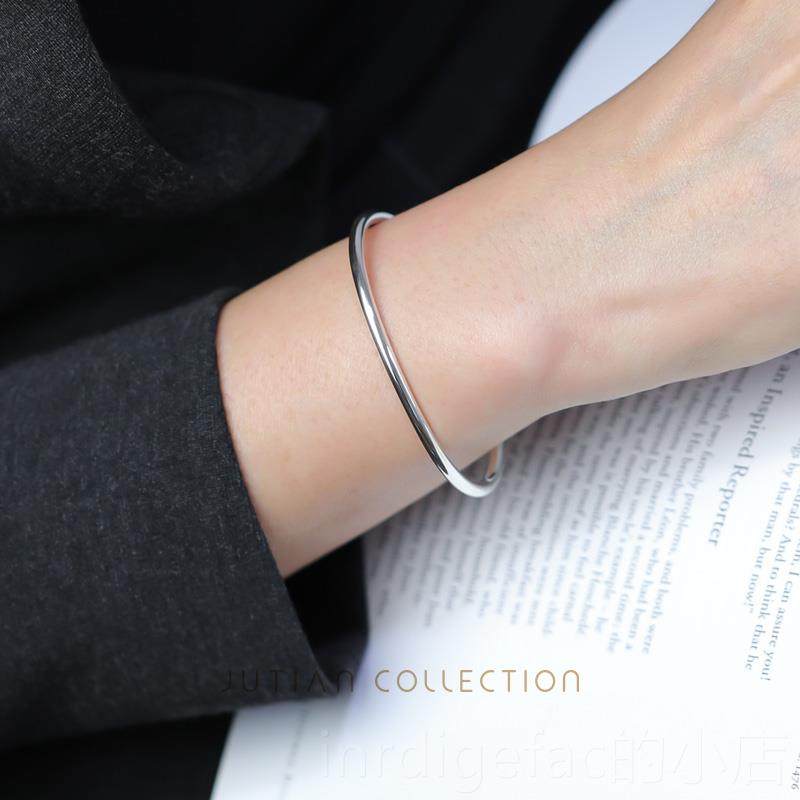 新款JUTIAN 银手n镯女is潮 简约冷淡风光面礼基本款气质百纯搭银