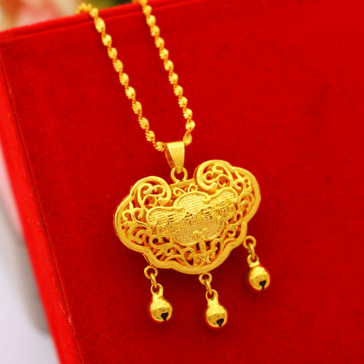 越南沙金项链女长命锁铃铛仿真黄金正品999久不掉色女款吊坠24K金