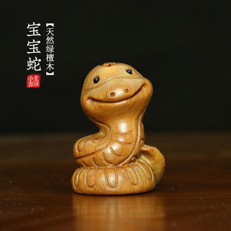 天然绿檀木宝宝蛇可爱摆件创意生肖蛇年吉祥物木质文玩手把件送礼