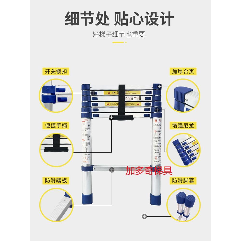 V5HA加厚铝合金伸缩梯蓝色塑料件竹节梯工程楼梯室内折叠升降梯子